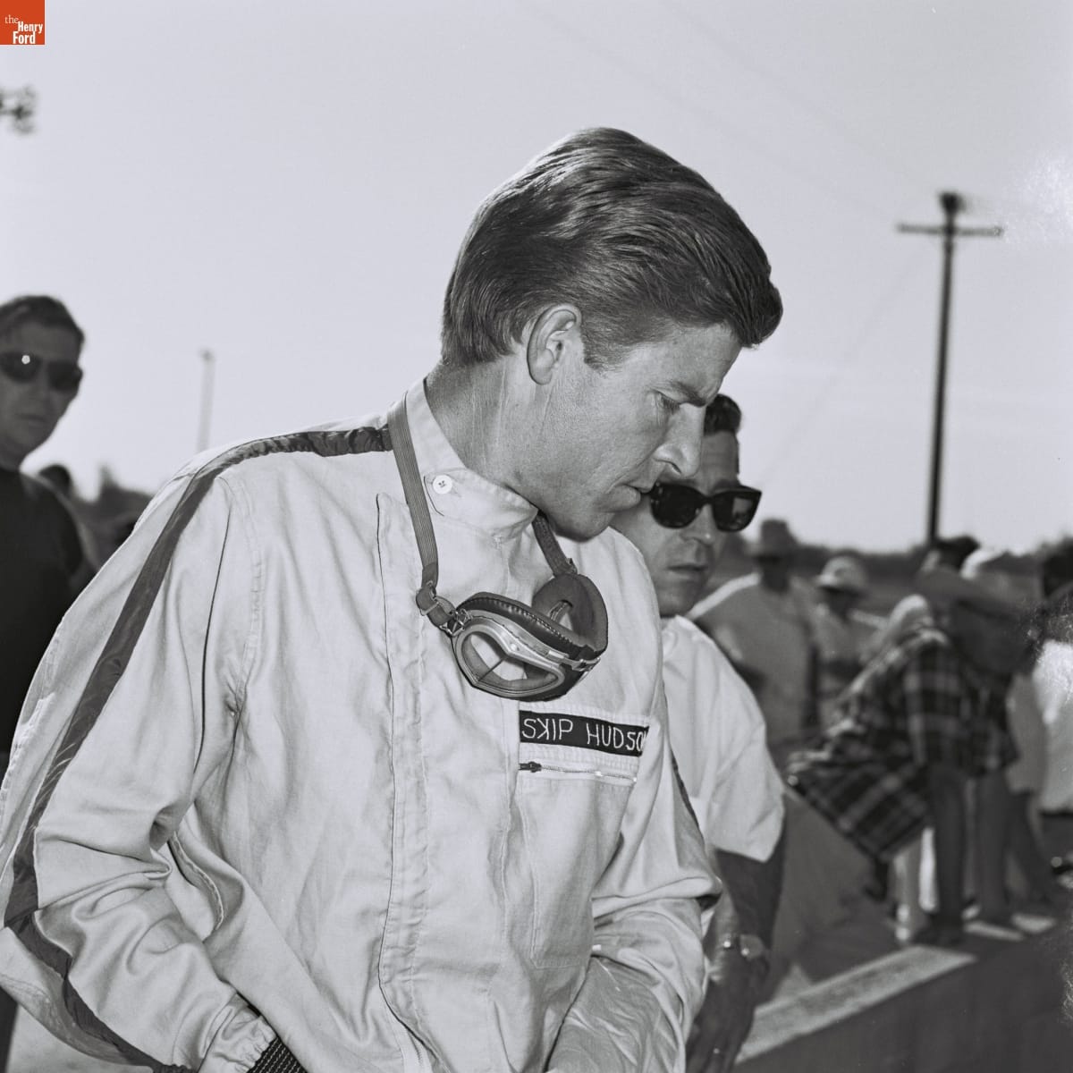 Dave Friedman captured and preserved auto racing history through his photography. His work -- and his collection of works by other photographers -- documents key races, cars, and teams. The 1966 Los Angeles Times Grand Prix was held at Riverside International Raceway. John Surtees bested Jim Hall in this Canadian-American (Can-Am) Challenge Cup event. "Skip" Hudson, seen here, finished nineteenth.