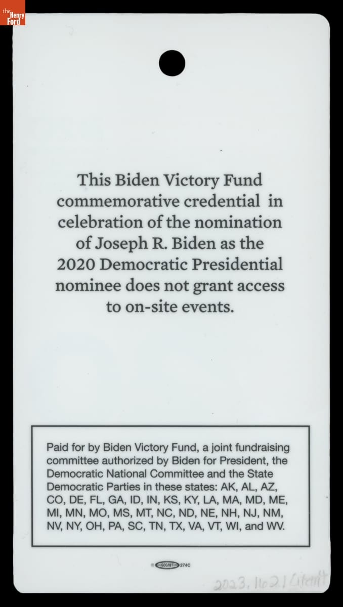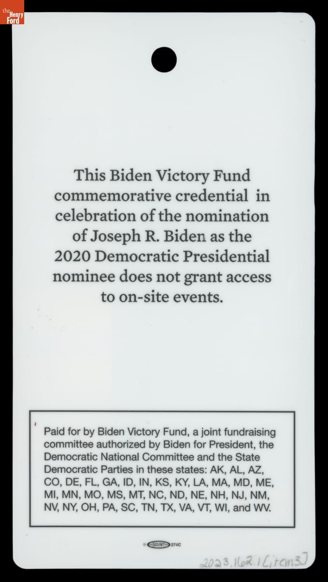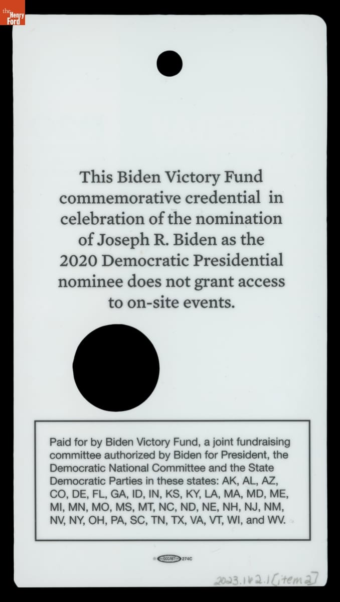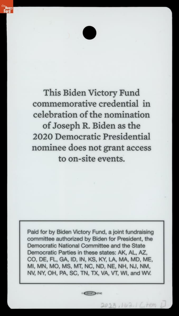 Commemorative Credentials for the 2020 Democratic National Convention, Milwaukee, Wisconsin, August 2020