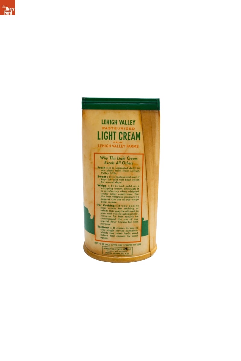 LEHIGH VALLEY / PASTEURIZED / LIGHT CREAM / FROM / LEHIGH VALLEY FARMS / [...] / NOT TO BE SOLD AFTER DAY STAMPED ON SEAL / APPROVED STATE BUREAU / WEIGHTS AND MEASURES / PENNA. SERIAL No. A-17