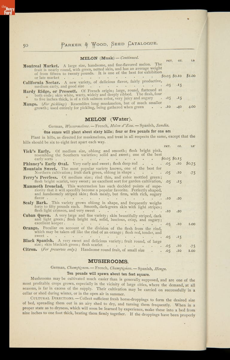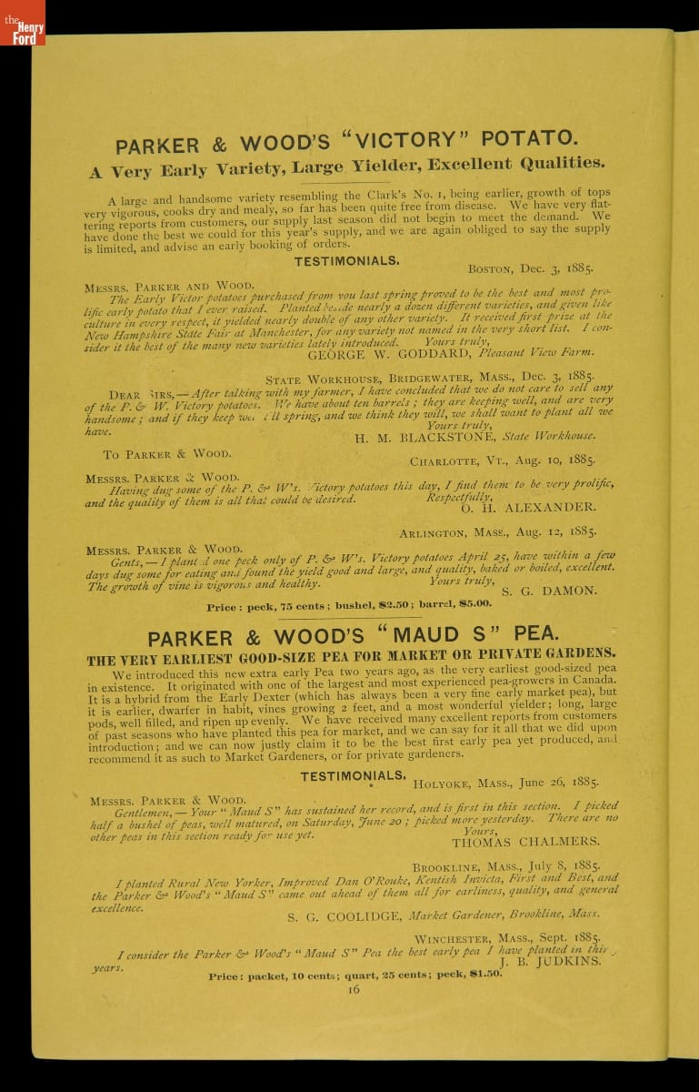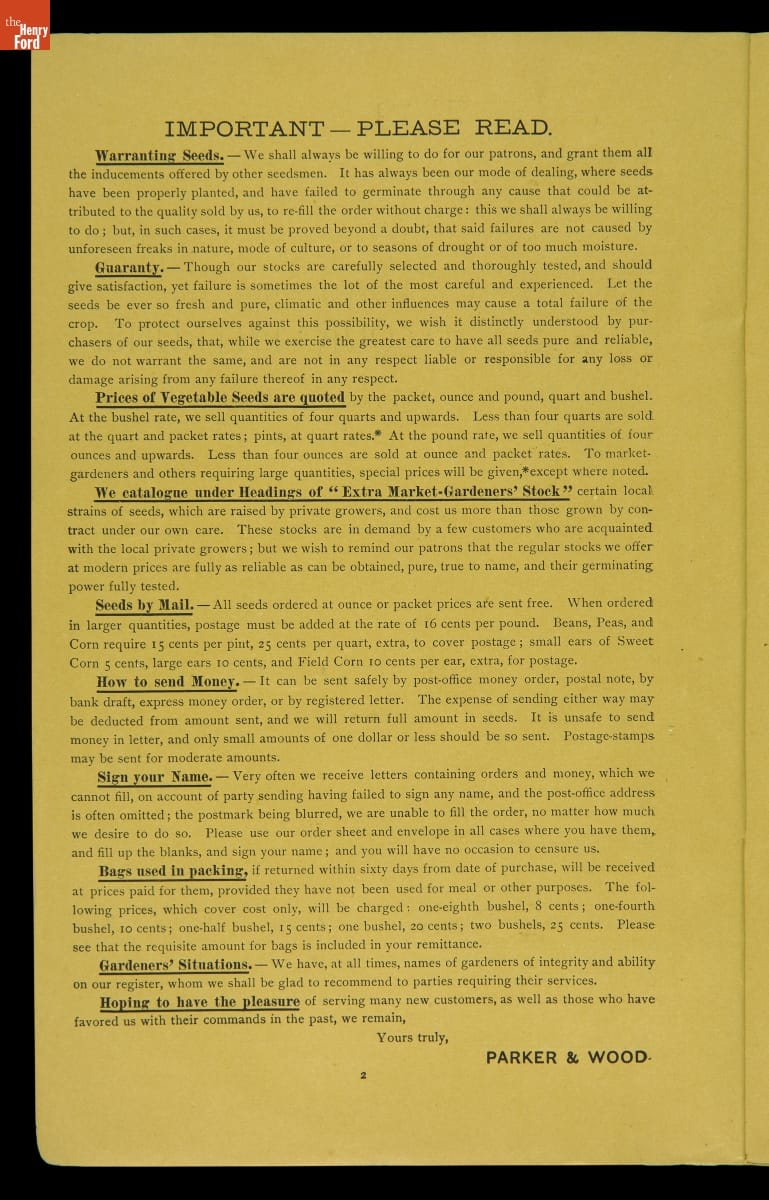 "Catalogue of Seeds & Implements, Woodenware," Parker & Wood, 1886