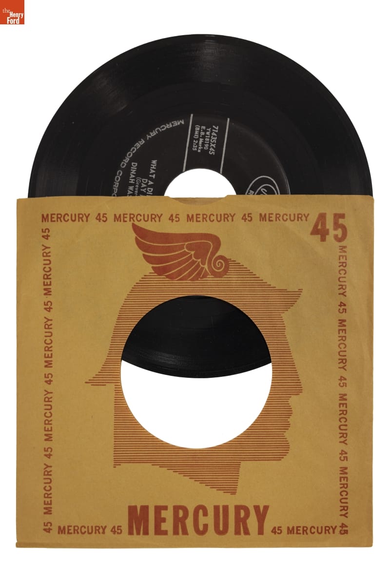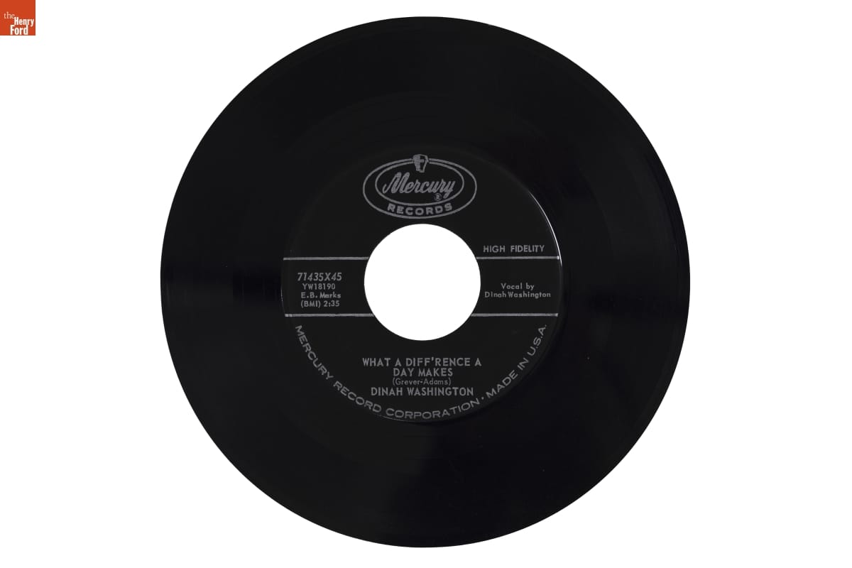 on one side of record: Mercury (R) / RECORDS / HIGH FIDELITY / 71435x45 / YW18190 / E.B. MARKS / (BMI) 2:35 / Vocal by / Dinah Washington / WHAT A DIFF'RENCE A / DAY MAKES / (Grever-Adams) / DINAH WASHINGTON / MERCURY RECORD CORPORATION - MADE IN U.S.A. on one side of record: Mercury (R) / RECORDS / HIGH FIDELITY / 71435x45 / YW18192 / DeLaru Music / (BMI) 2:35 / Vocal by / Dinah Washington / COME ON HOME / (D. Washington - Hill) / DINAH WASHINGTON / MERCURY RECORD CORPORATION - MADE IN U.S.A. on either side of record cover: MERCURY 45 (repeated)