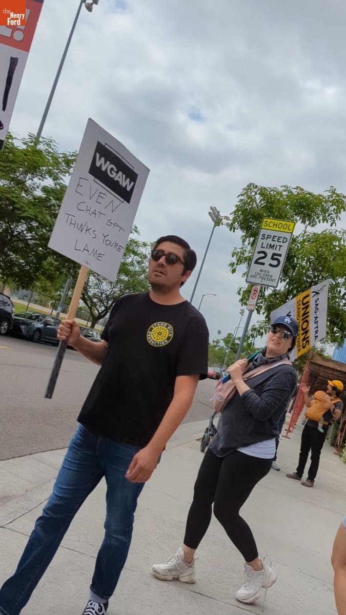 Writers Guild of America West Picketer Holding Sign that Reads "Even ChatGPT Thinks You're Lame," June 3, 2023