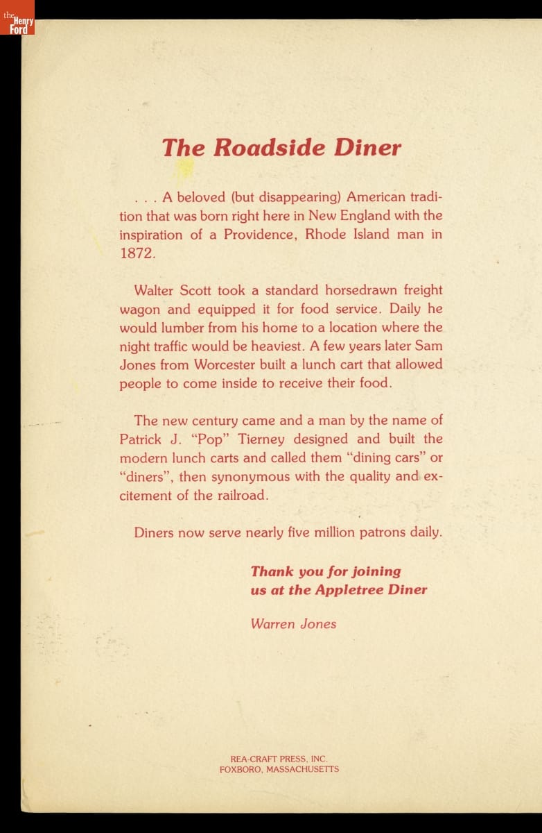 From the Collections of The Henry Ford. Richard J.S. Gutman Diner Collection.