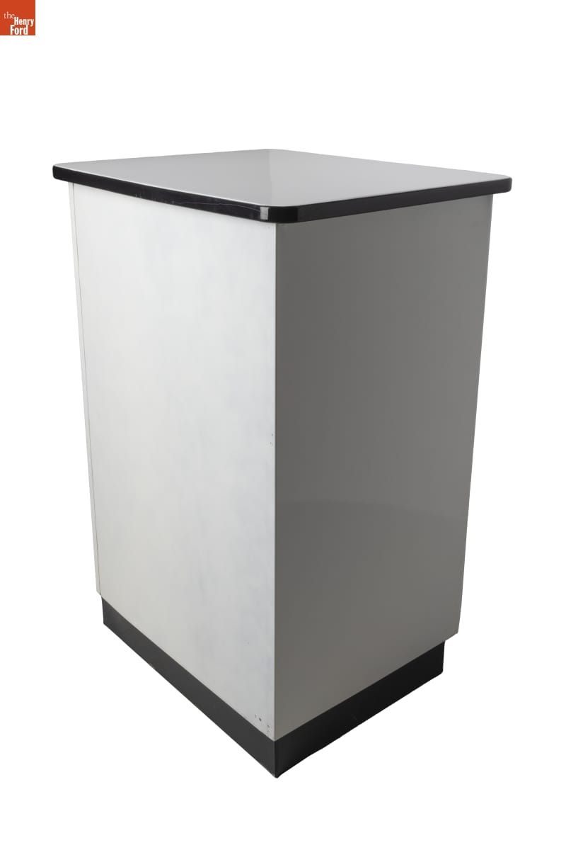 Velma Truant (1928-2021) began her hairstyling career at the Detroit Hudson's department store salon in the late 1940s. When she left Hudson's in 1963 to care for her young daughter, Truant set up a salon to serve clients from the basement of her Allen Park, Michigan, home. She stored a range of equipment, such as hairbrushes and rollers, in this cabinet.