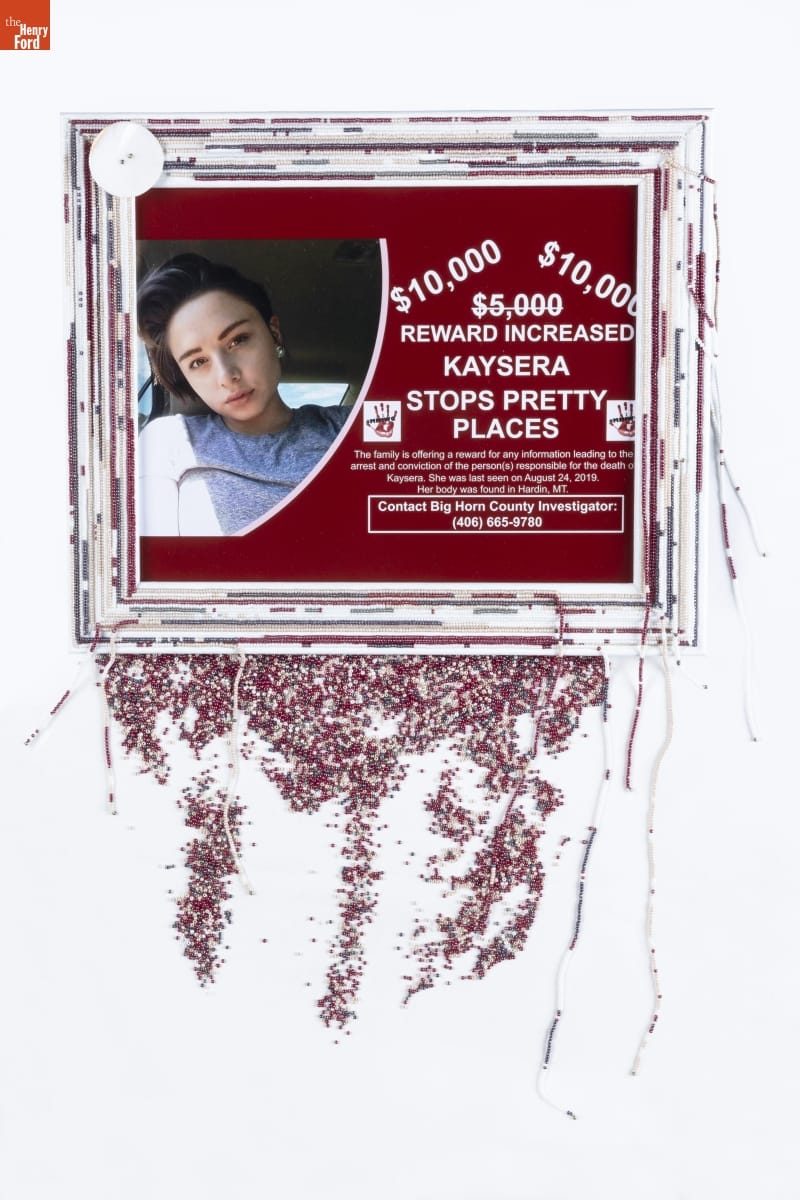 In 2019, eighteen-year-old Kaysera Stops Pretty Places, from the Crow and Northern Cheyenne Reservations, went missing and was later found murdered in Hardin, Montana. Her story is part of the epidemic of violence against Indigenous women, where four in five will experience violence in their lifetime, and murder is the third leading cause of death. This sculpture brings greater awareness to these issues.