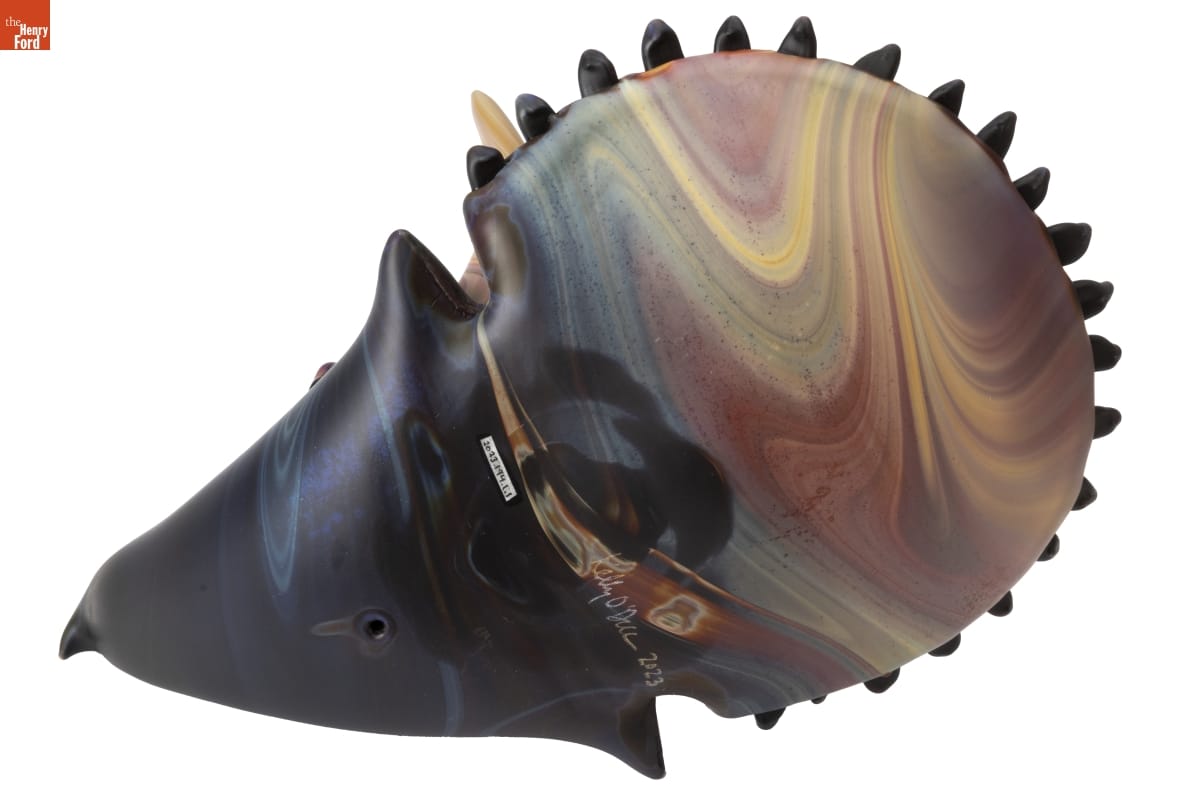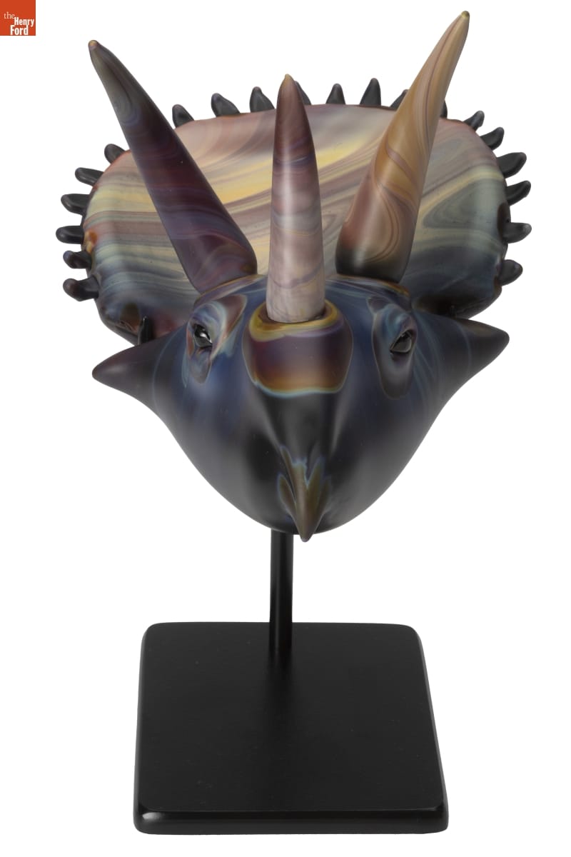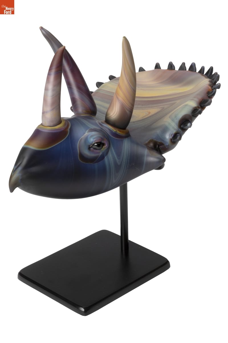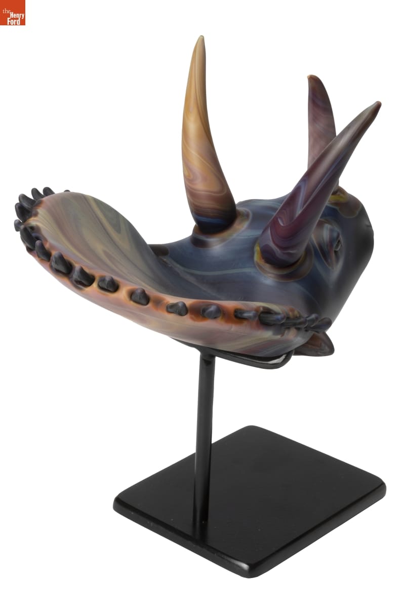 Glass captivated Kelly O'Dell (1973- ) from a young age, watching her father work in his small studio. She acquired additional skills and knowledge at the famous Pilchuck Glass School and by assisting well-known studio glass artists, notably William Morris. O'Dell sculpted this dinosaur -- part of her continued exploration of these beasts of the ancient past -- during her 2023 "Artist-in-Residence" at Greenfield Village.