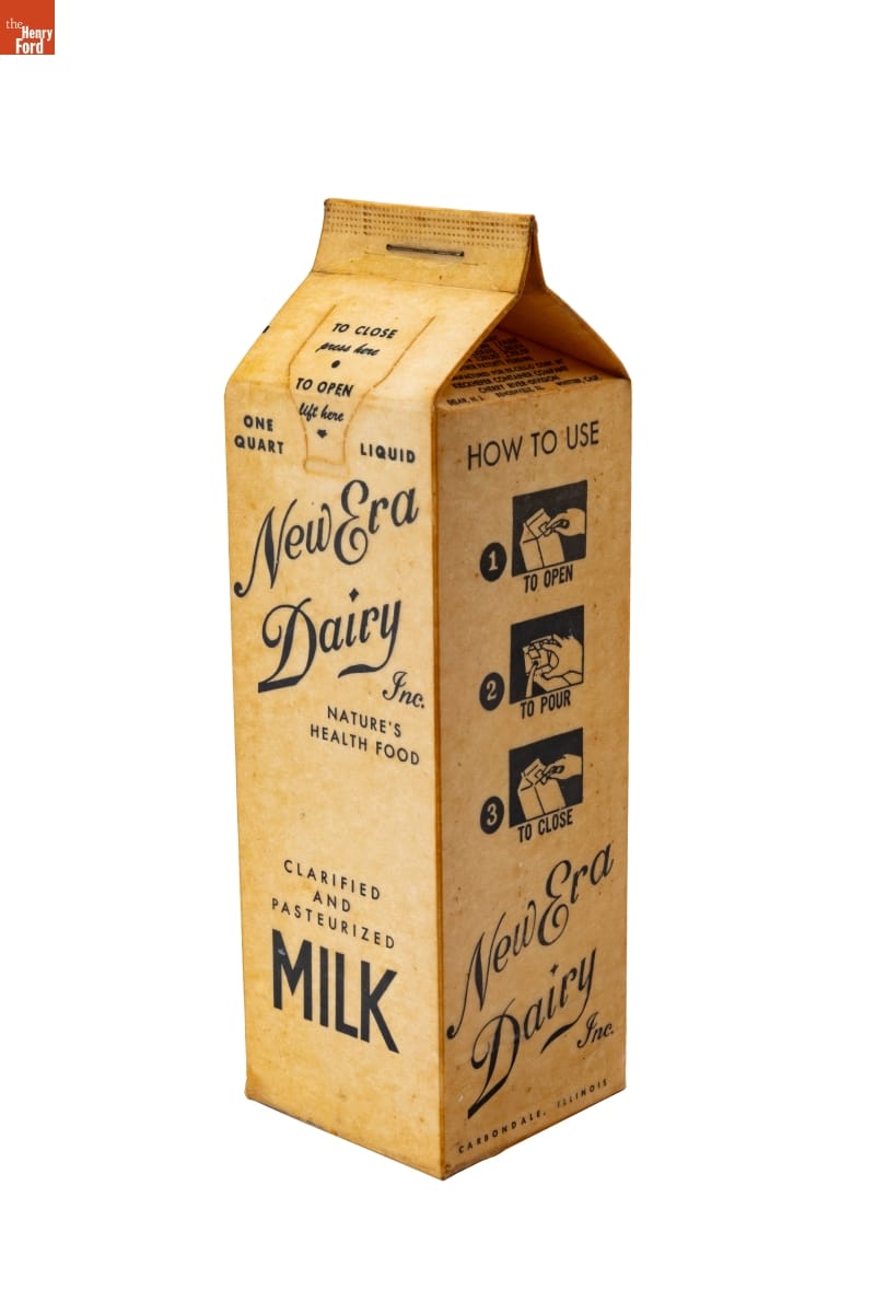 Manufactured for Ex-Cell-O Corporation, Detroit, Michigan, by the Kieckhefer Container Company, Cherry River Division, Delair, New Jersey, Bensenville, Illinois, and Whittier, California, for New Era Dairy Inc., Carbondale, Illinois.