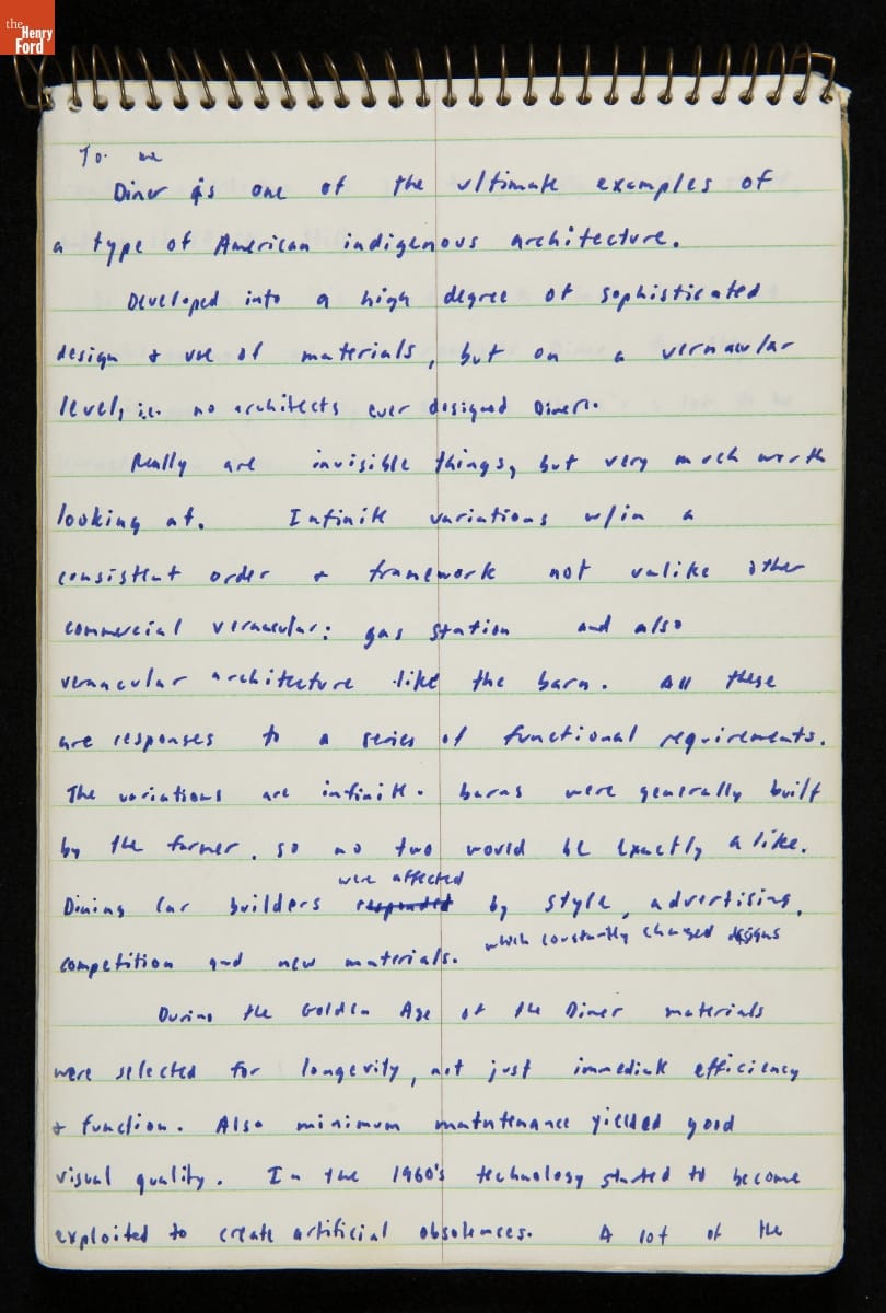 "Cornell-Era Diner Notes," Used by Richard J.S. Gutman, circa 1971