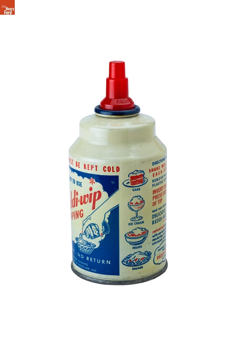 CONTAINER MUST BE KEPT COLD / READY TO USE / Reddi-wip / TOPPING / NO DEPOSIT - NO RETURN / VALVE PATENT PENDING / COPYRIGHT 1948 BY REDDI-WIP, INC.