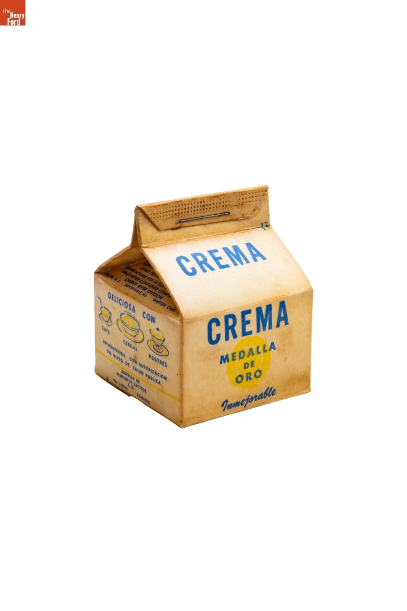 The quest for a shatter-proof milk container prompted John Van Wormer to patent a paper carton in 1915. Many processors and distributors continued to use breakable glass bottles, but, after 1937, mechanized production made the disposable, wax-coated folded cartons inexpensive and indispensable liquid containers. The iconic design, a box with a gable-end top with a pouring or drinking spout, remains the industry standard today.