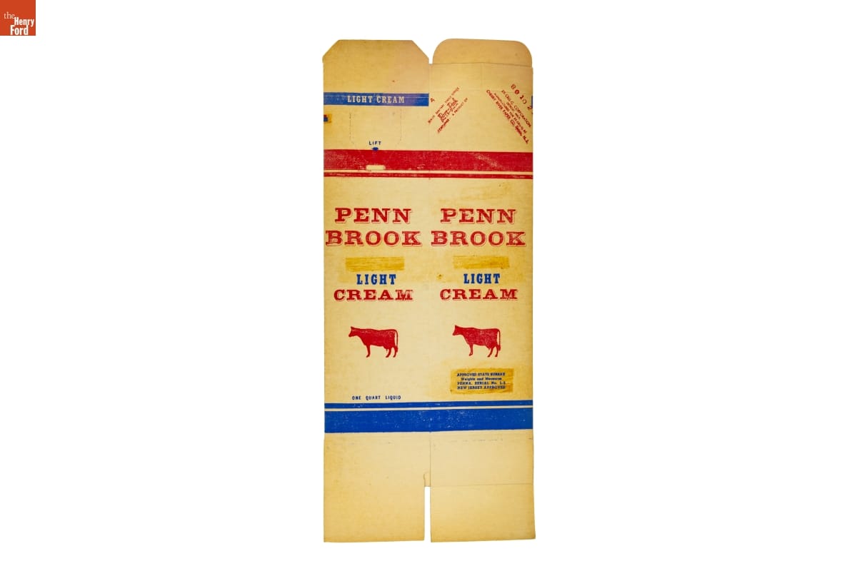 The quest for a shatter-proof milk container prompted John Van Wormer to patent a paper carton in 1915. Many processors and distributors continued to use breakable glass bottles, but, after 1937, mechanized production made the disposable, wax-coated folded cartons inexpensive and indispensable liquid containers. The iconic design, a box with a gable-end top with a pouring or drinking spout, remains the industry standard today.