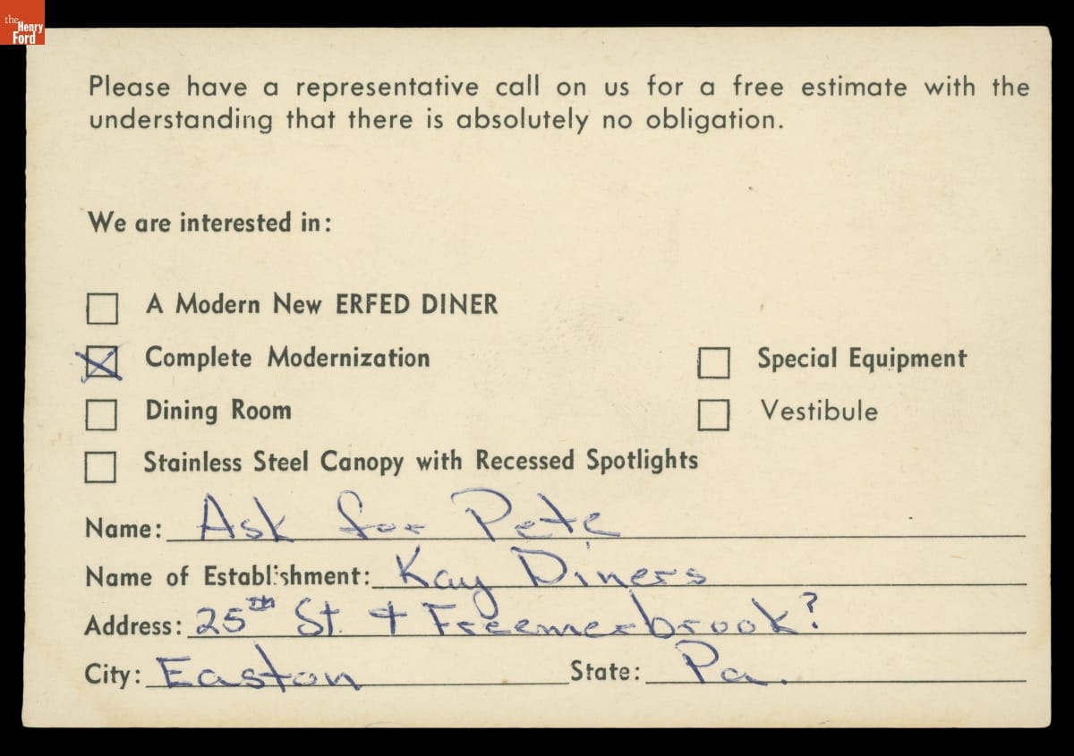 From the Collections of The Henry Ford. Richard J.S. Gutman Diner Collection.