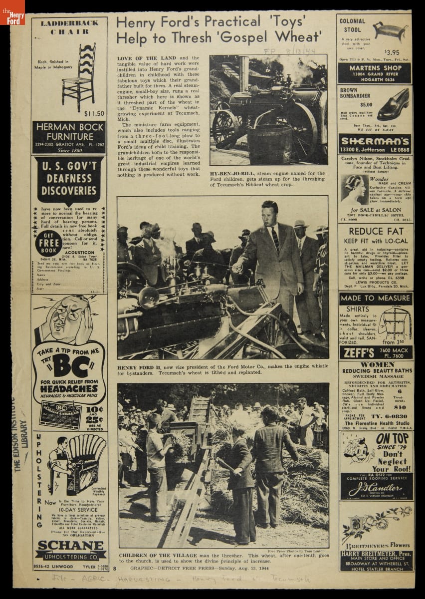 "Henry Ford's Practical 'Toys' Help to Thresh 'Gospel Wheat,'" Article from Detroit Free Press, August 13, 1944