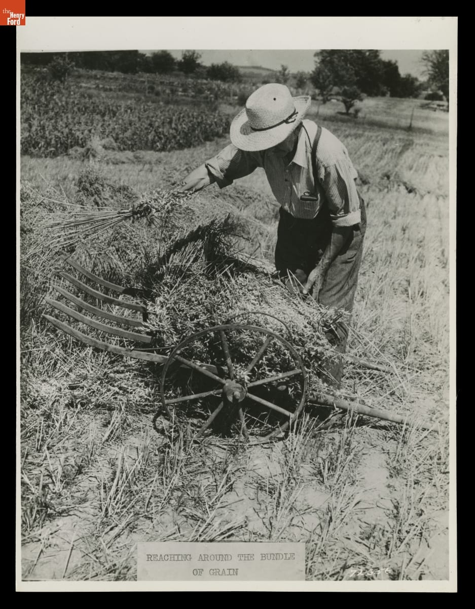 "Reaching Around the Bundle of Grain," H.H. Raby Harvesting Using a Grain Cradle, 1944