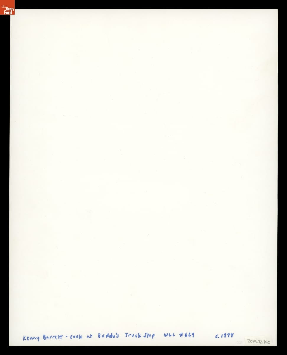 Cook Kenny Barrett inside Buddy's Truck Stop, Somerville, Massacusetts, circa 1974