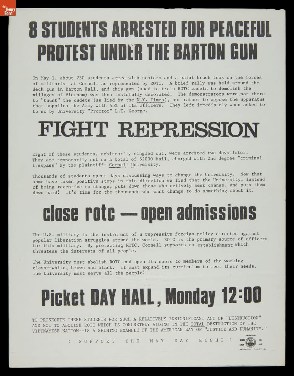 "8 Students Arrested for Peaceful Protest under the Barton Gun," 1969