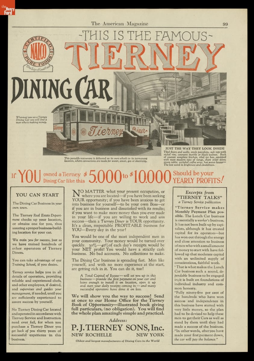 "This is the Famous Tierney Dining Car," Advertisement, circa 1926