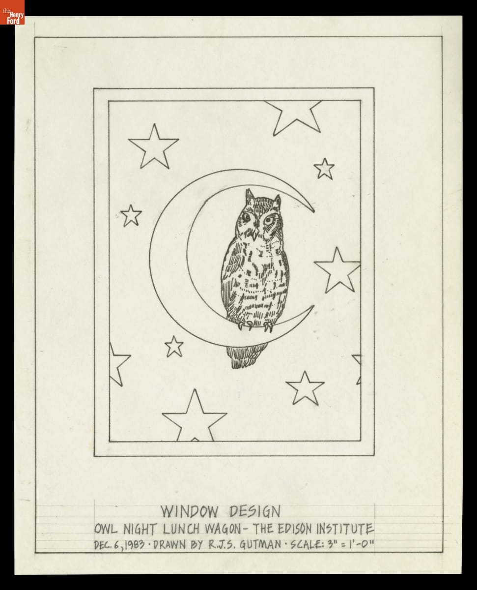 "Window Design for Owl Night Lunch Wagon, Drawn by R.J.S. Gutman," December 6, 1983