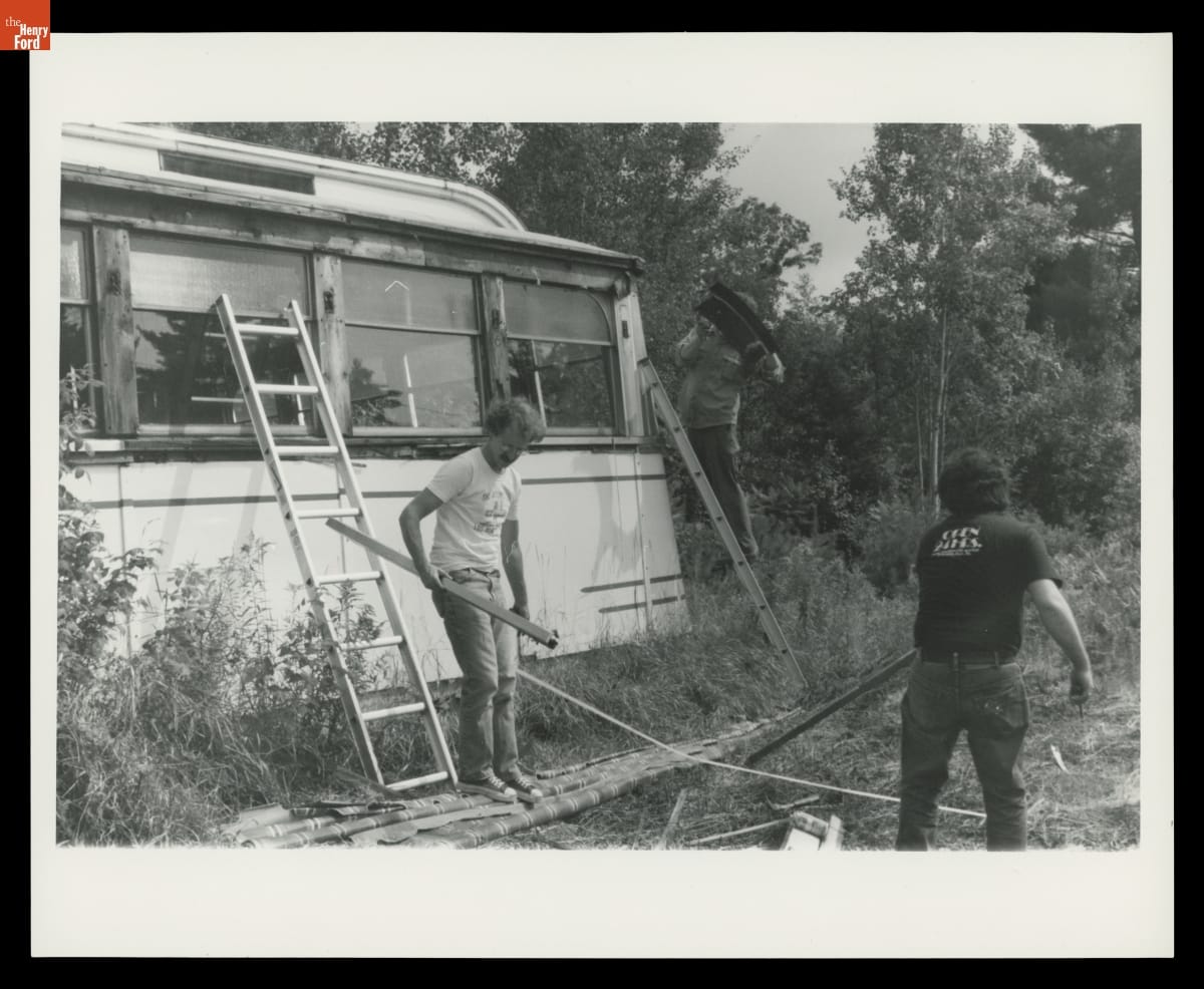Richard Gutman and Larry Cultrera Dismantling Corriveau's Diner for Salvage, Gilmanton, New Hampshire, August 1985
