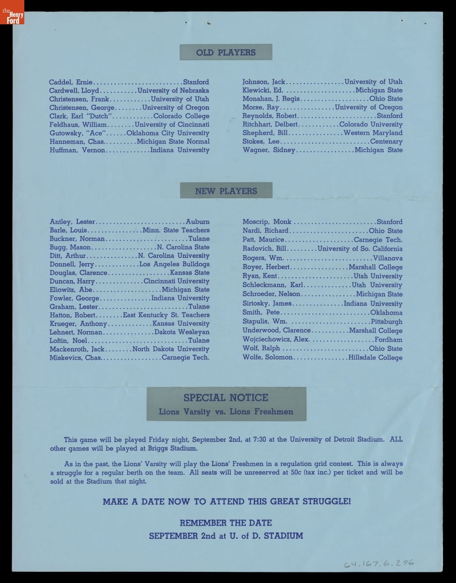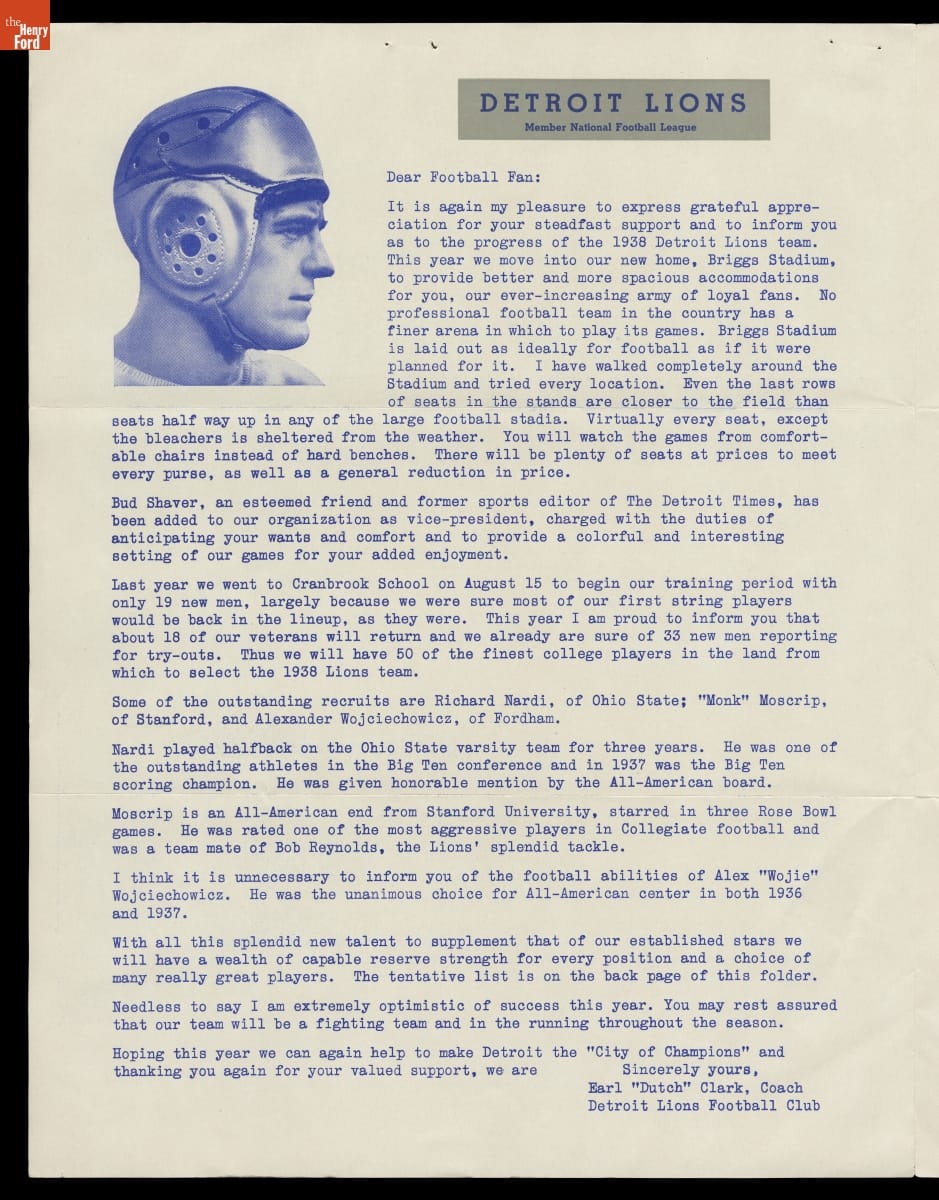 "The New Home of the Detroit Lions: Briggs Stadium," 1938