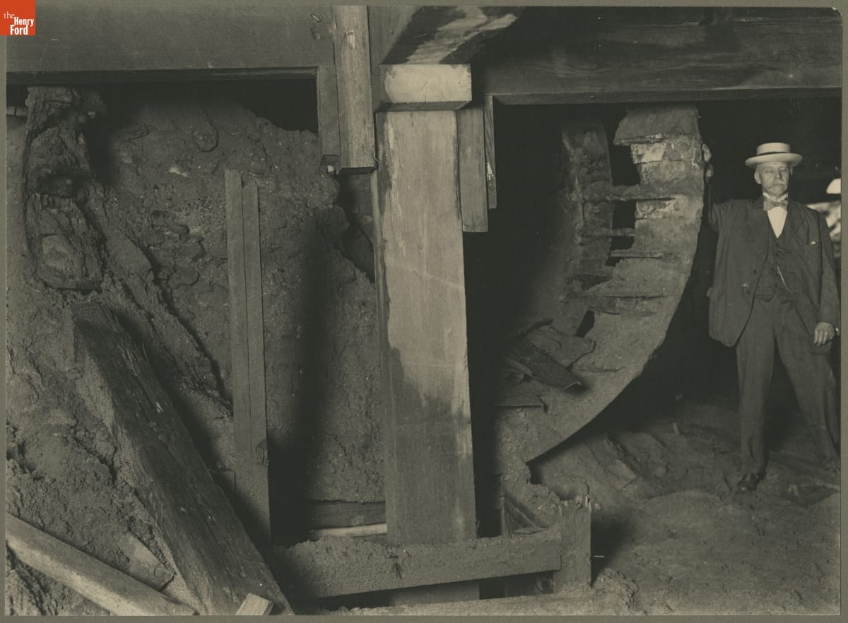 Frederick Converse Beach with the Beach Hydraulic Shield in the Pneumatic Transit Tunnel, 1912