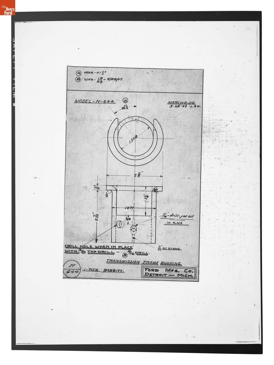 Drawing, "Transmission Frame Bushing," Ford Model N, May 26, 1908