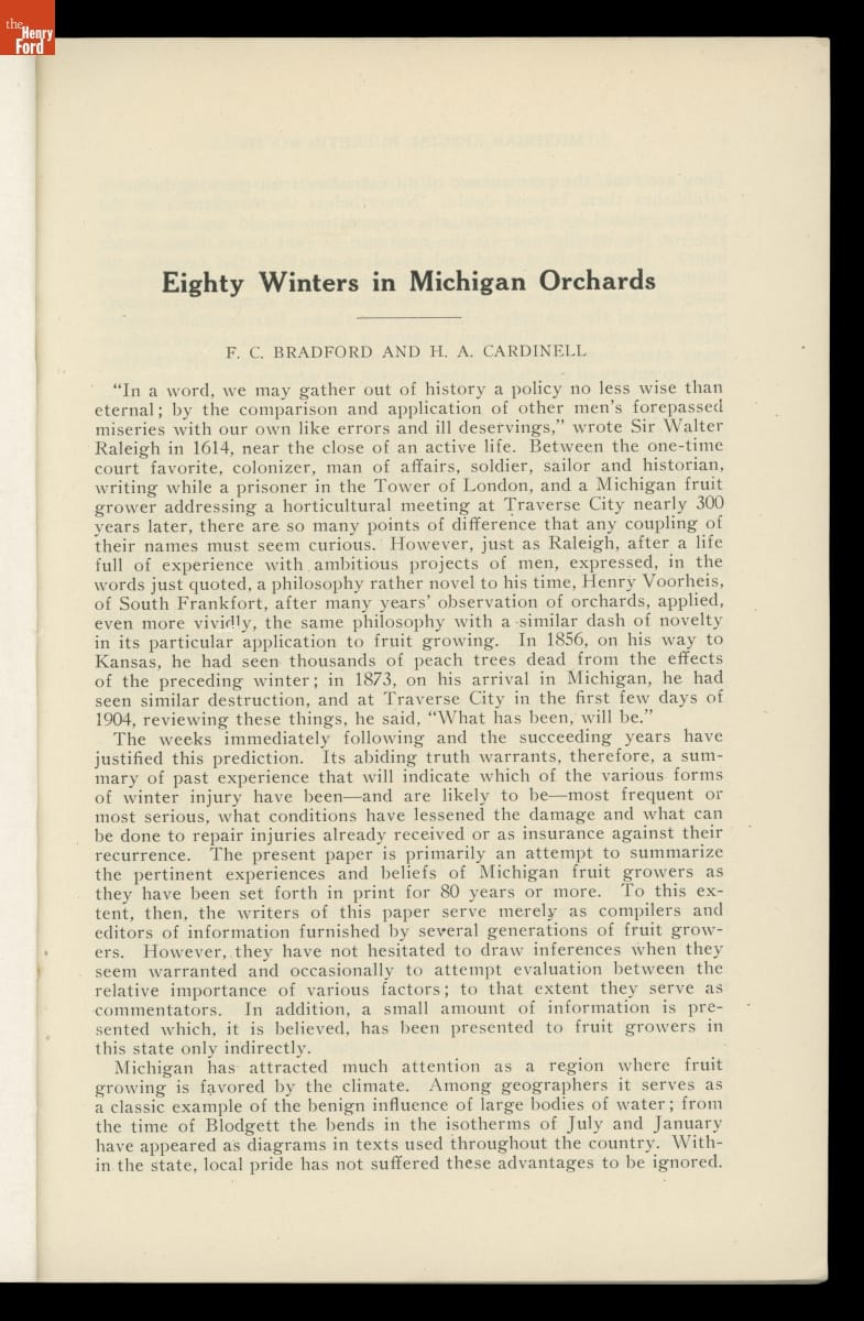 "Eighty Winters in Michigan Orchards," Special Bulletin No. 149, February 1926