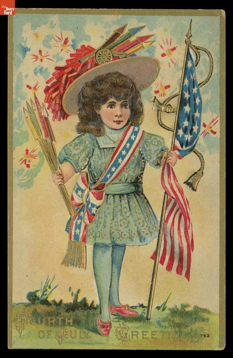 In 1898, the United States Post Office reduced the cost of mailing privately printed postcards to one cent. As postcards caught the public's fancy in the first decade of the 20th century, these cards blossomed with colorful images, humorous messages, or holiday greetings. Colorful, printed Fourth of July postcards often depicted flags, fireworks, and scenes of Independence Day celebrations.