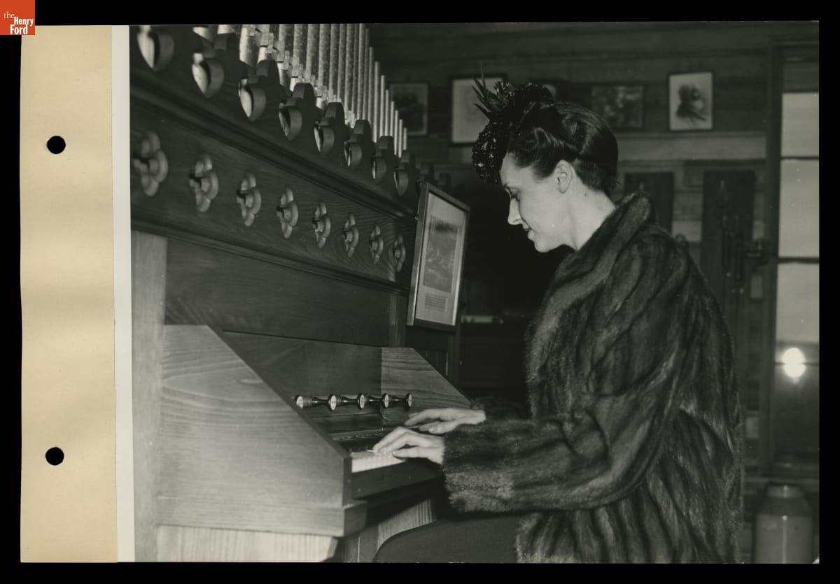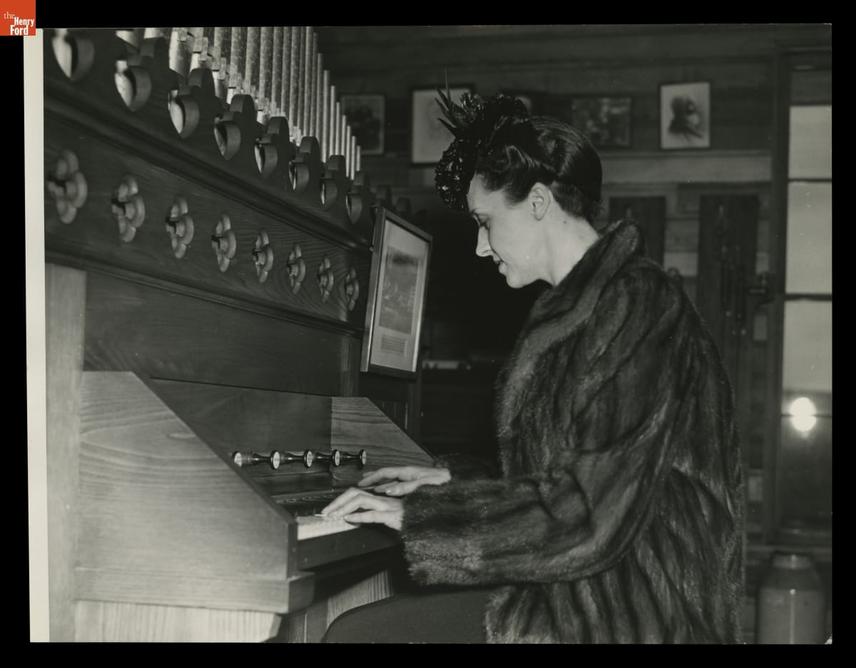 Eve Curie, daughter of two-time Nobel Prize recipient Marie Curie, visited Greenfield Village on April 1, 1939. Eve had written a biography about her famous mother and was on a tour of America, lecturing on the history of women in science. Ten years earlier, Marie had visited Greenfield Village for the Light's Golden Jubilee celebration and had spoken highly of the event.