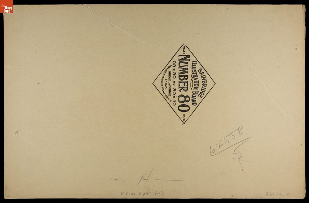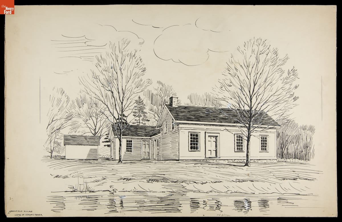 Irving Bacon, a Ford Motor Company employee and Henry Ford's personal artist, created pen-and-ink drawings to illustrate guidebooks for the Edison Institute Museum and Greenfield Village (now The Henry Ford) when they officially opened to the public in 1933. An illustrated souvenir guidebook helped visitors navigate the exhibits and grounds. Ford also used these drawings in other company publications.
