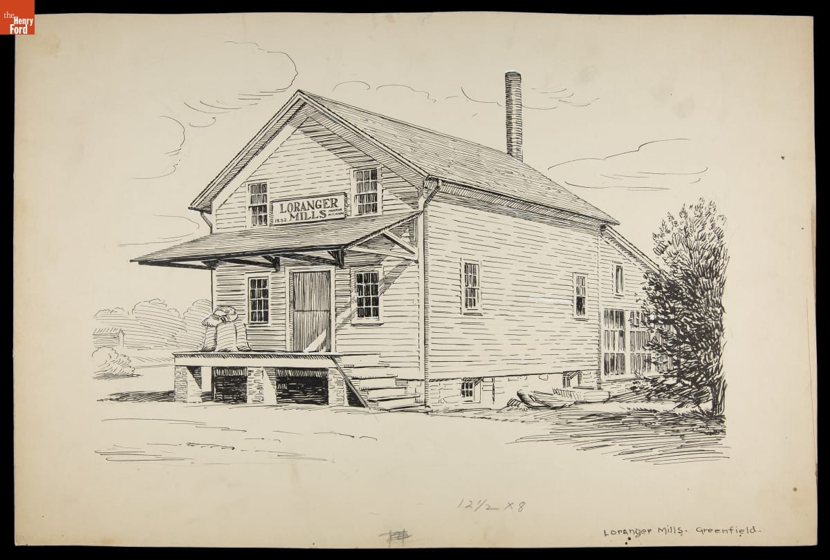 Irving Bacon, a Ford Motor Company employee and Henry Ford's personal artist, created pen-and-ink drawings to illustrate guidebooks for the Edison Institute Museum and Greenfield Village (now The Henry Ford) when they officially opened to the public in 1933. An illustrated souvenir guidebook helped visitors navigate the exhibits and grounds. Ford also used these drawings in other company publications.