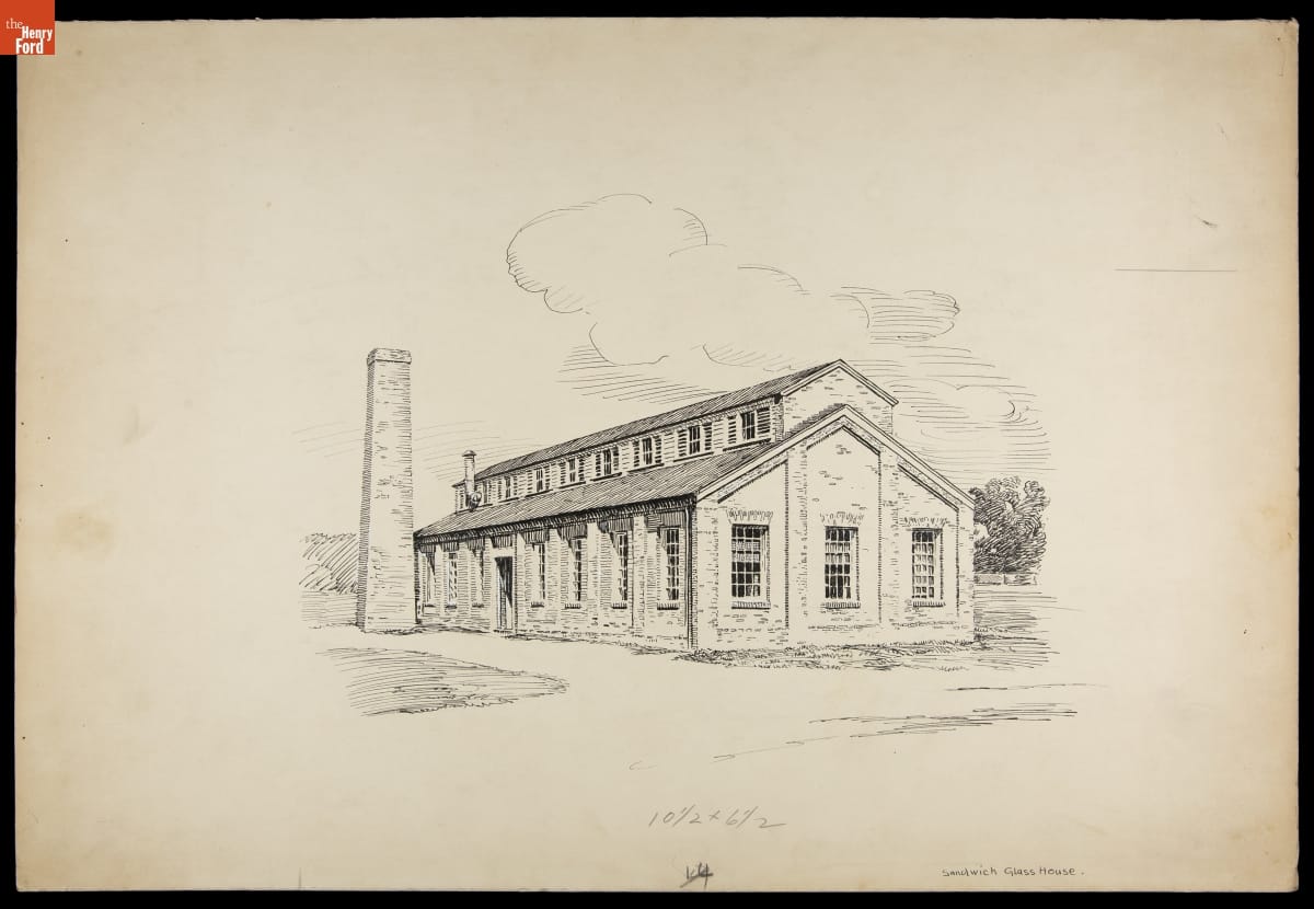 Irving Bacon, a Ford Motor Company employee and Henry Ford's personal artist, created pen-and-ink drawings to illustrate guidebooks for the Edison Institute Museum and Greenfield Village (now The Henry Ford) when they officially opened to the public in 1933. An illustrated souvenir guidebook helped visitors navigate the exhibits and grounds. Ford also used these drawings in other company publications.