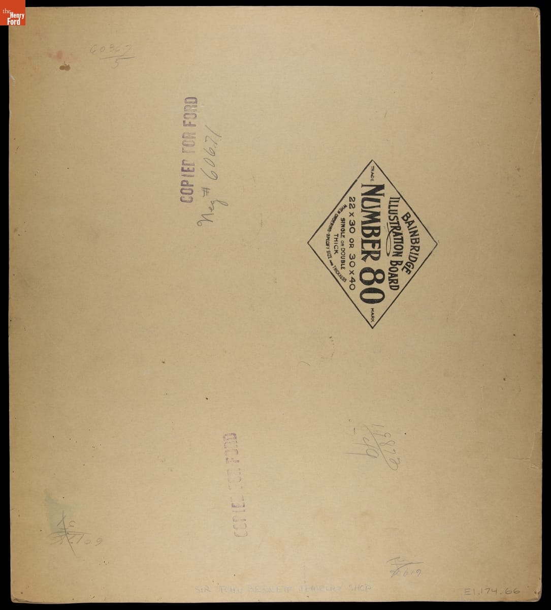 Irving Bacon, a Ford Motor Company employee and Henry Ford's personal artist, created pen-and-ink drawings to illustrate guidebooks for the Edison Institute Museum and Greenfield Village (now The Henry Ford) when they officially opened to the public in 1933. An illustrated souvenir guidebook helped visitors navigate the exhibits and grounds. Ford also used these drawings in other company publications.