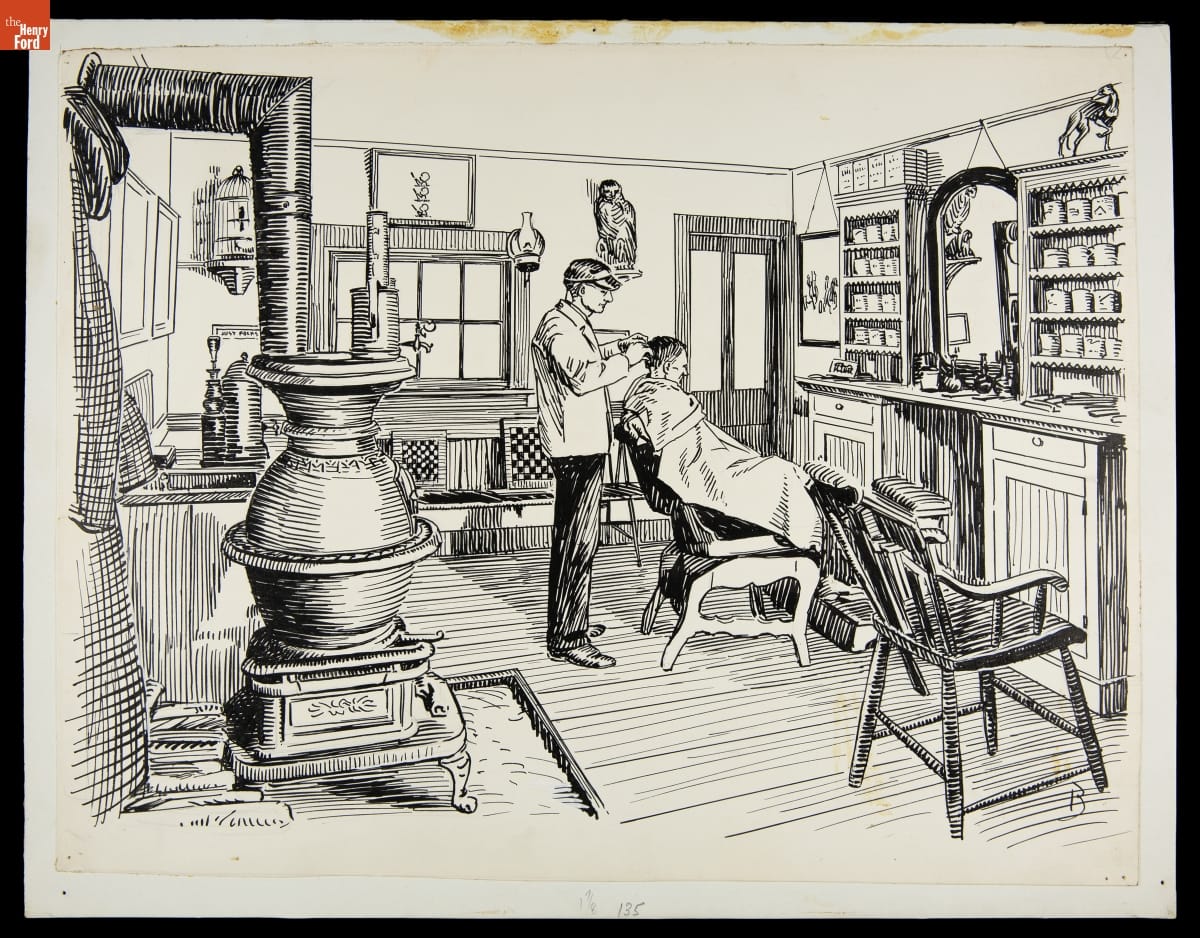 Barber Shop in Henry Ford Museum "Street of Shops" Exhibit, circa 1941
