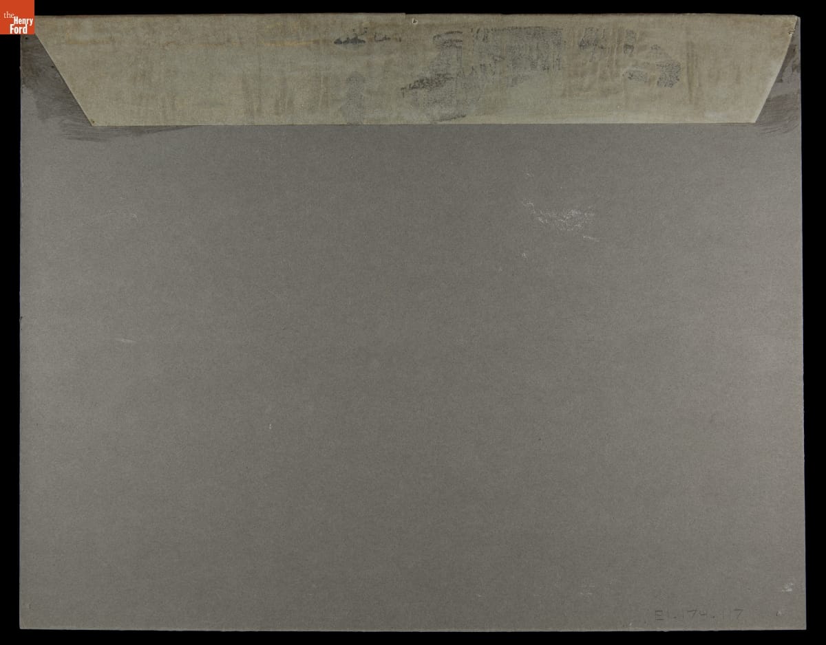 Henry Ford encouraged and appreciated the work of artist and illustrator Irving Bacon. In 1915, Bacon joined the Photographic Department of Ford Motor Company after he returned from studying art in Europe. Over the next thirty years, Bacon painted scenes depicting Ford's life, created portraiture, and illustrated articles for company publications. This drawing depicts the Street of Shops exhibit in the Henry Ford Museum.