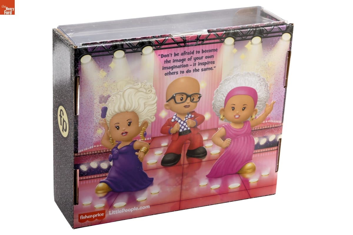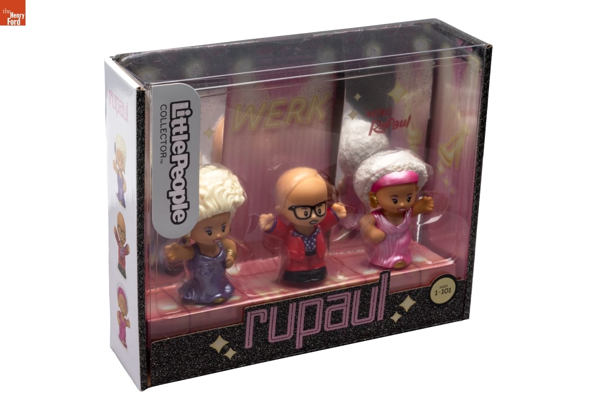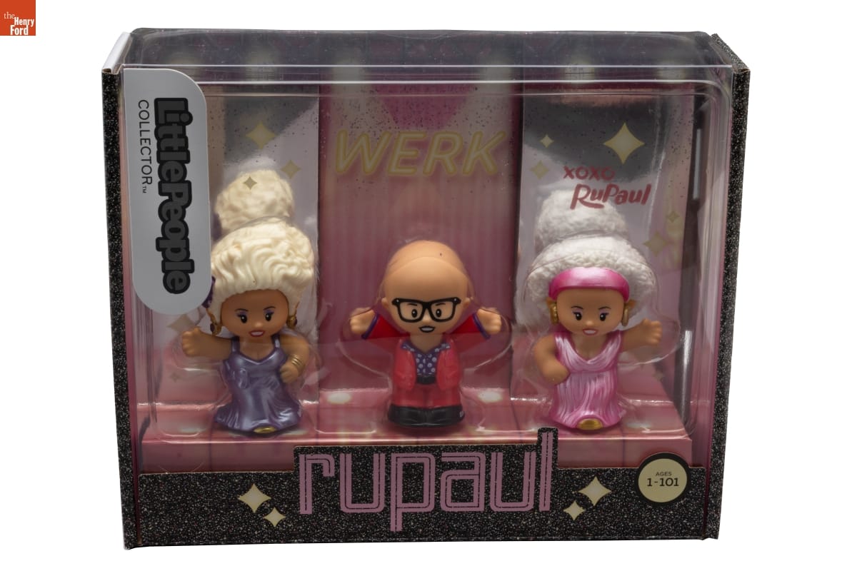 Throughout his career, RuPaul has broken barriers and achieved many "firsts" as a drag performer. These Little People toys feature RuPaul as he appears on his hit television show RuPaul's Drag Race. The show and its spinoffs feature drag performers from around the world. Through RuPaul and Drag Race, drag has reached a greater level of "mainstream" visibility and popularity.