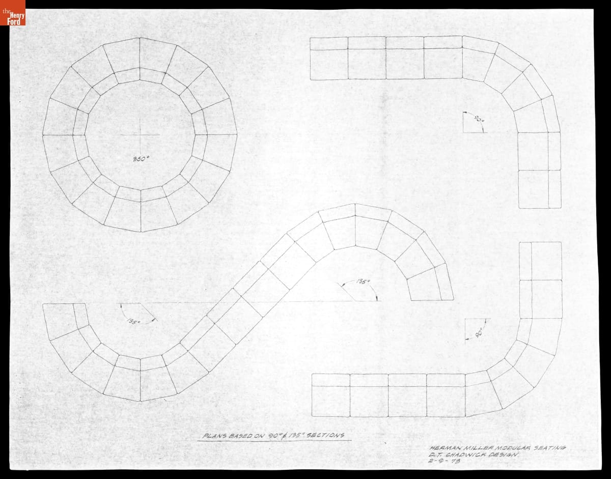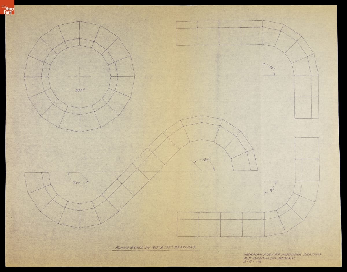 Herman Miller Modular Seating Design by Don Chadwick, "Plans Based on 90° & 135° Sections," February 9, 1973