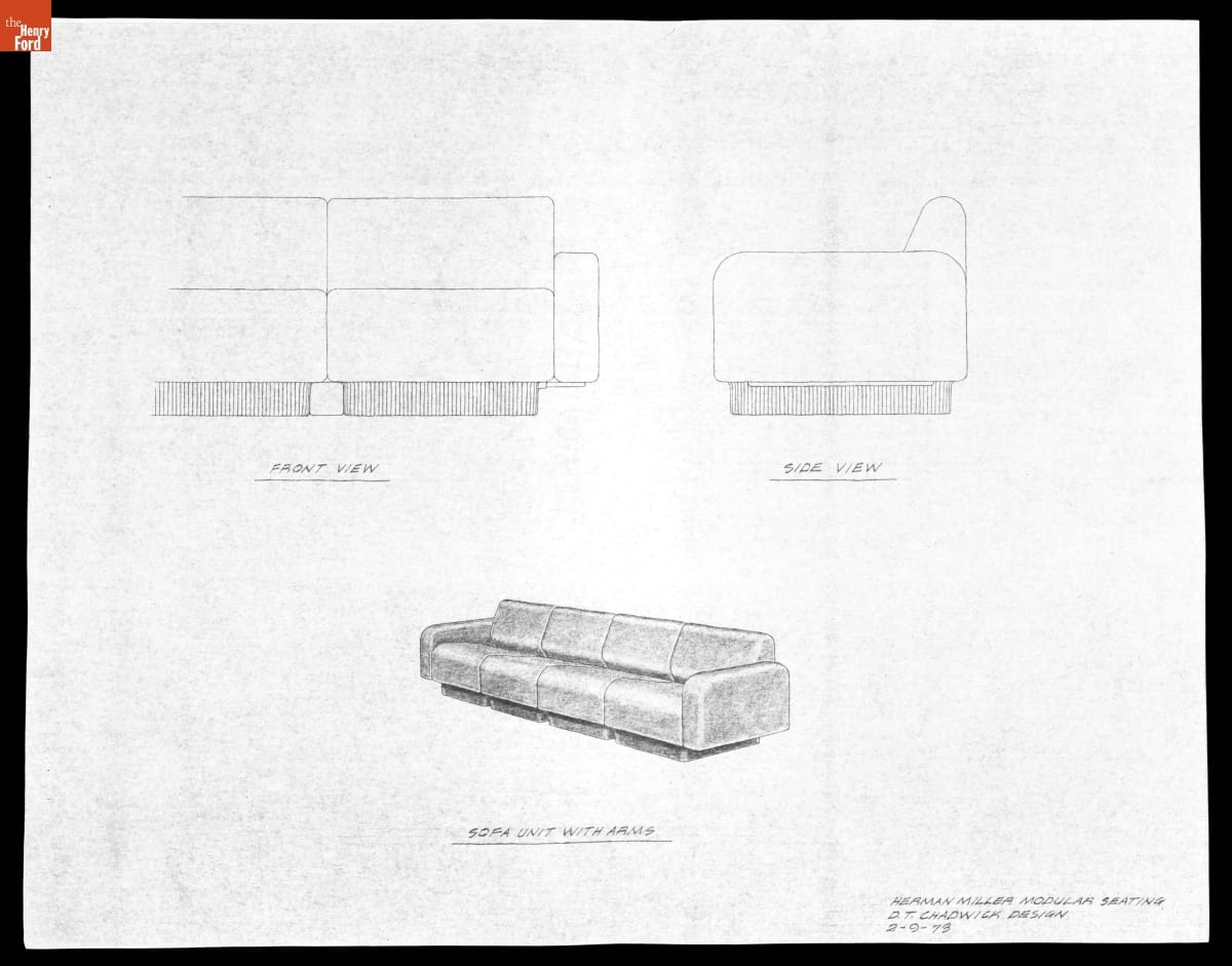 Herman Miller Modular Seating Design by Don Chadwick, "Sofa Unit With Arms," February 9, 1973