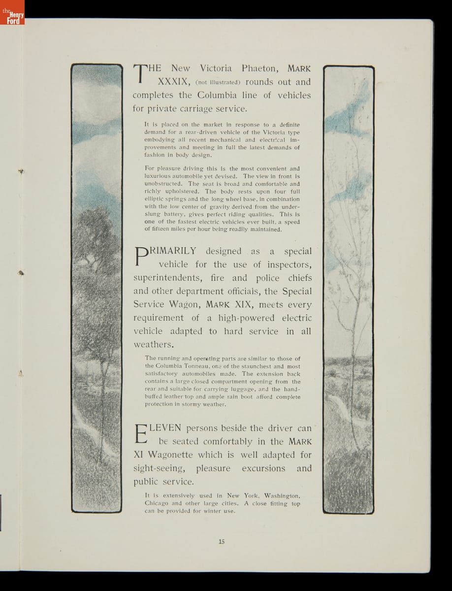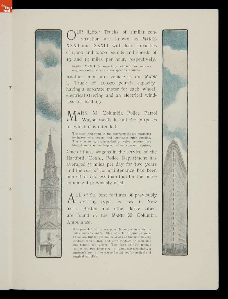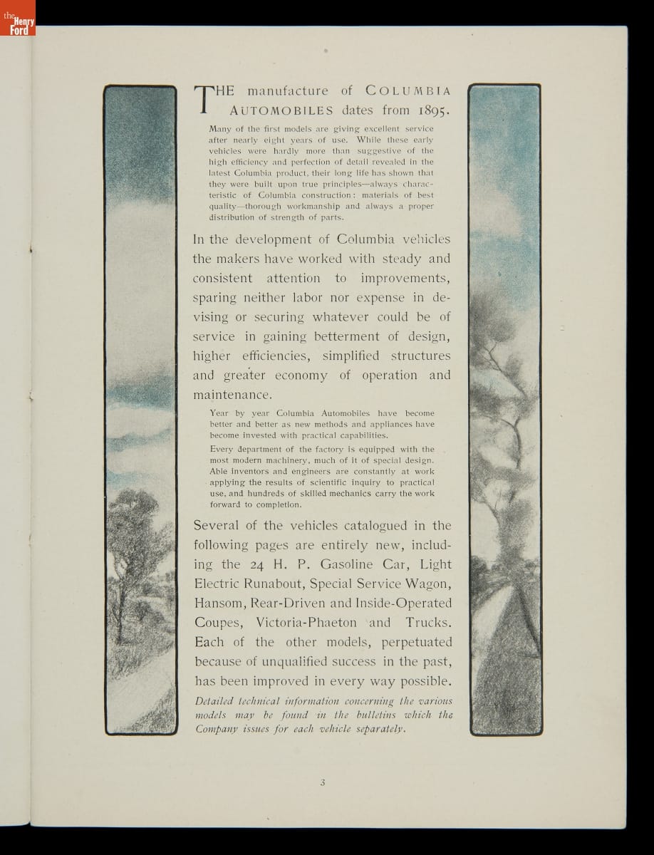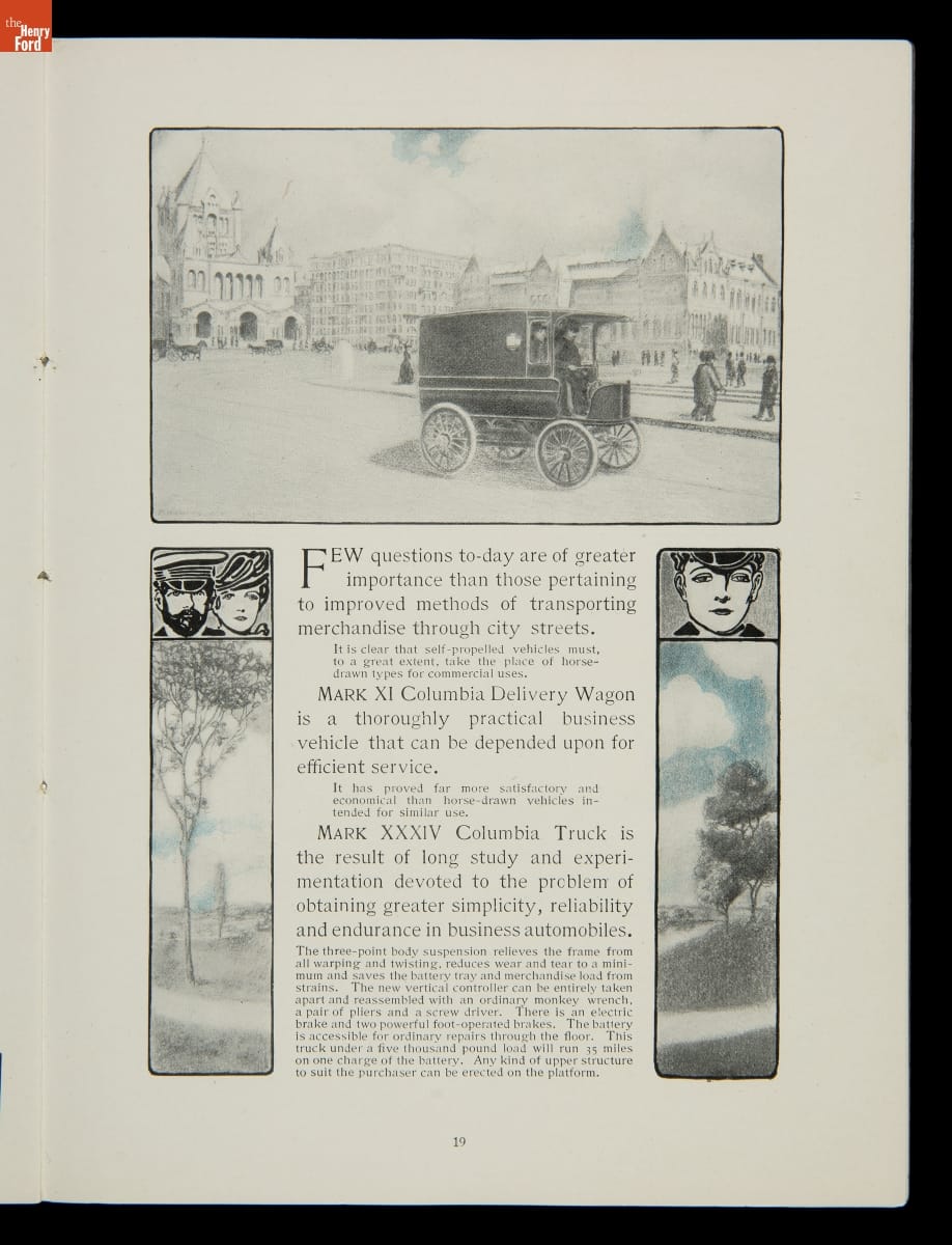 Columbia, built by the Pope Manufacturing Company of Hartford, Connecticut, was America's leading bicycle brand in the late 19th century. Founder Albert A. Pope hoped to duplicate that success with automobiles. Both electric and gasoline Columbia motor vehicles were produced in a range of body styles. But high prices hampered sales, and the last Columbia cars were built in 1913.