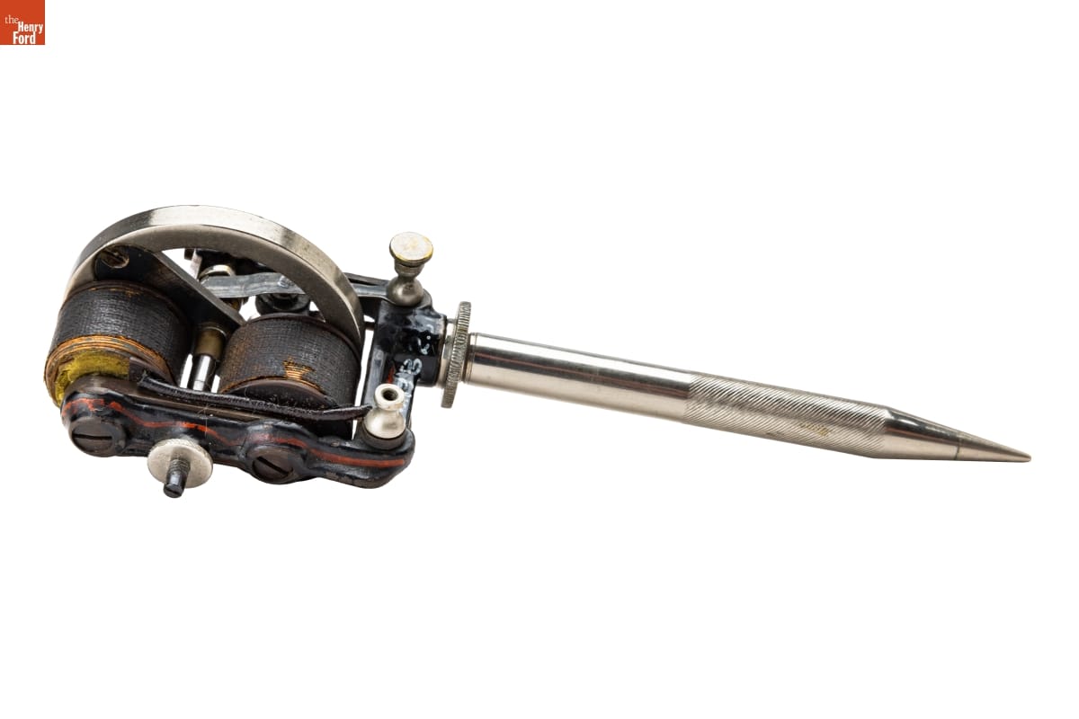 Thomas Edison's electric pen, an ancestor of both the mimeograph and the tattoo needle, was a successful product in the mid-1870s. Users would write normally with the pen, which, instead of a nib, had a needle powered by an electric motor. The needle poked holes into a stencil, which was then used to copy the document. Many businesses found document duplication an attractive possibility.