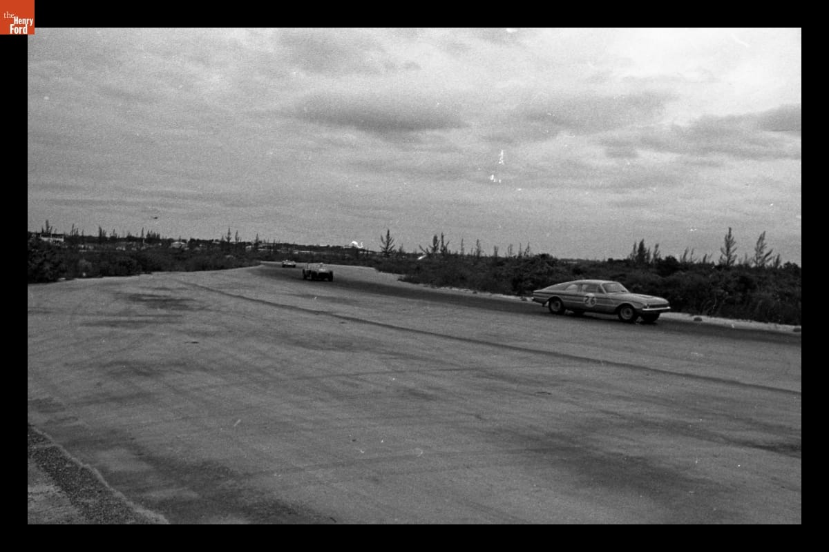 Dave Friedman has captured and preserved auto racing history through his photography. His work -- and his collection of works by other photographers -- documents key races, vehicles, drivers, and teams. The 9th Annual Bahamas Speed Weeks races featured world-class drivers competing in several sports car trophy races. Winners included Innes Ireland, Hap Sharp, and Roger Penske.
