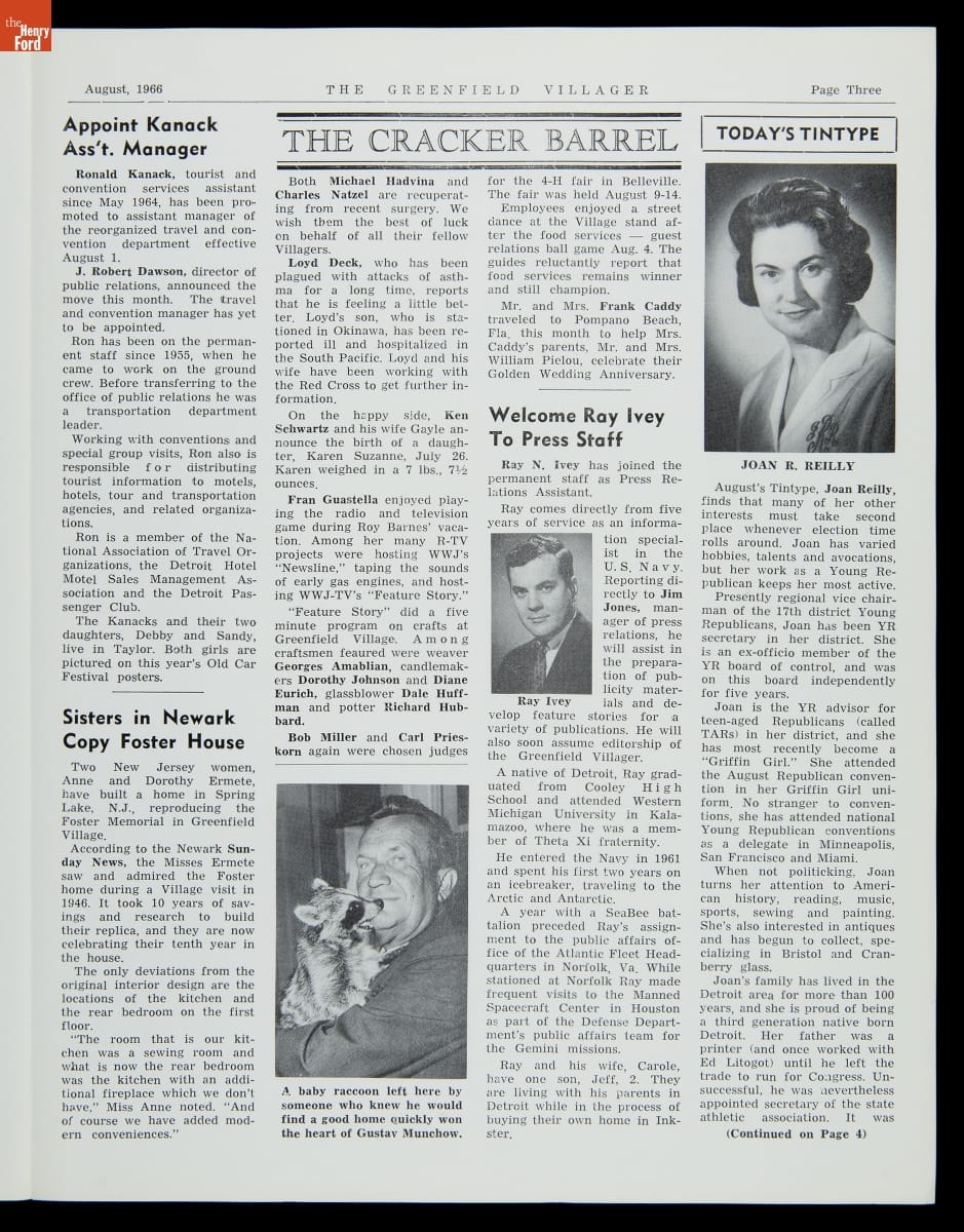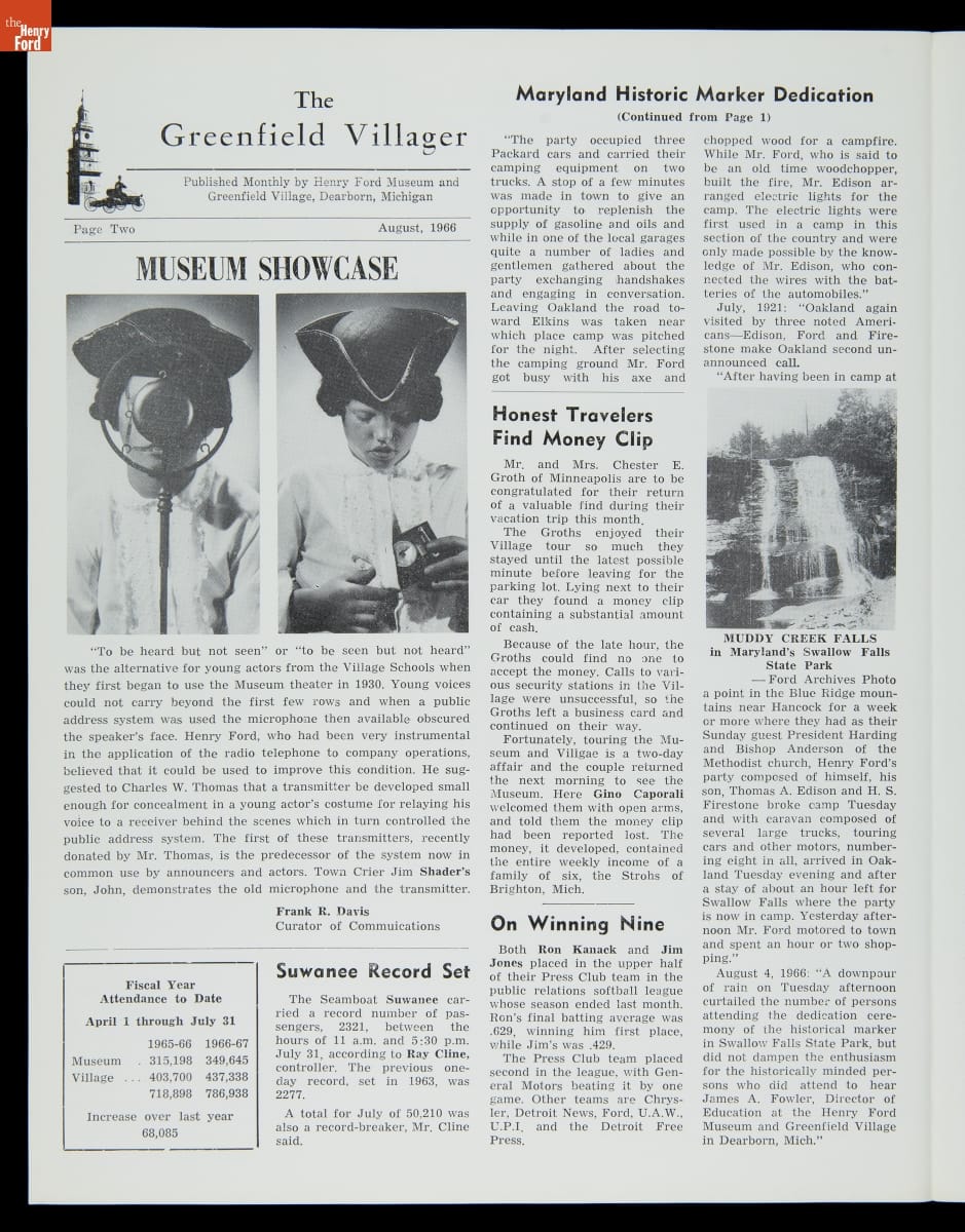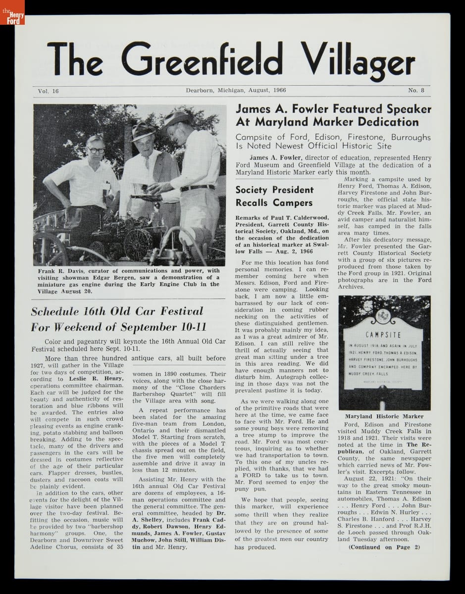 "The Greenfield Villager," Vol. 16, No. 8, August 1966