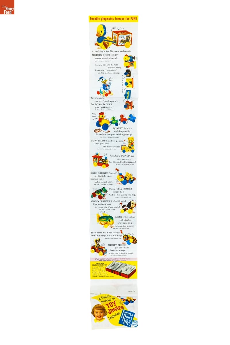 A Child's / Booklet of / TOY / JINGLES / featuring / FISHER / PRICE / TOYS / COMMENDED / BY THE / CONSUMER / SERVICE BUREAU / OF / PARENTS / MAGAZINE / AS ADVERTISED THEREIN