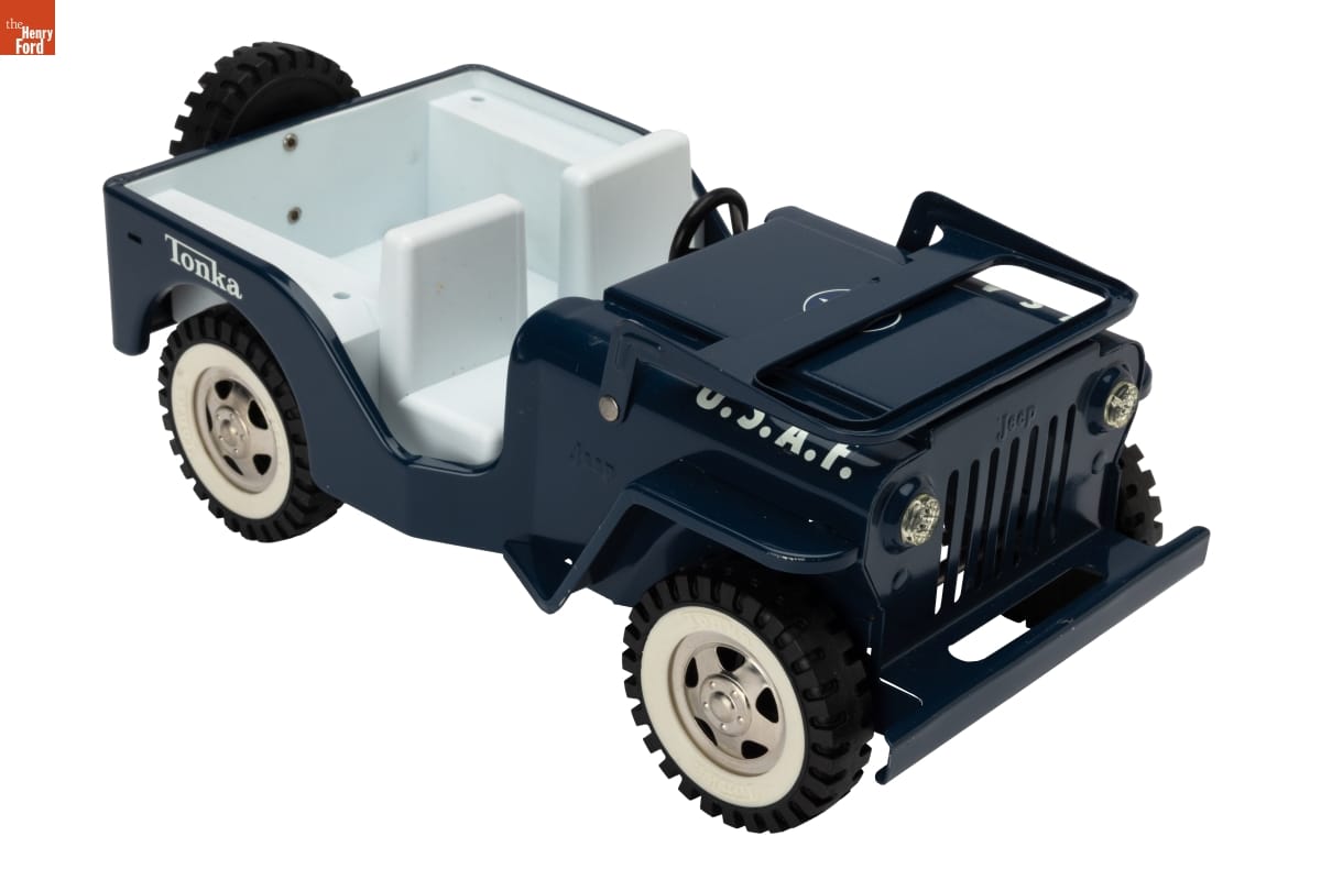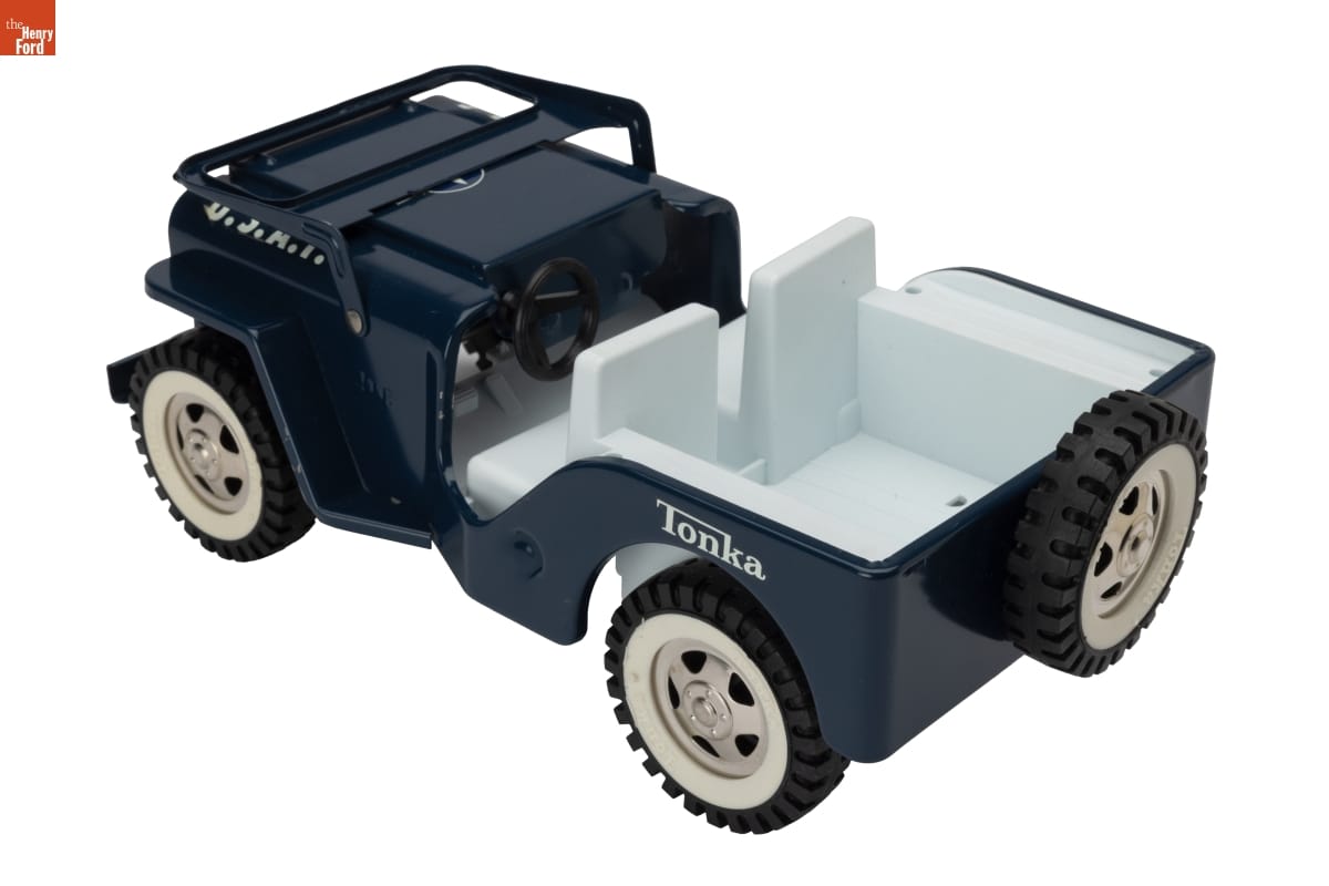 Toy jeep made by Tonka Corporation of Mound, Minnesota. Packaging made by Halper Corrugated Box. Co. of St. Paul, Minnesota.