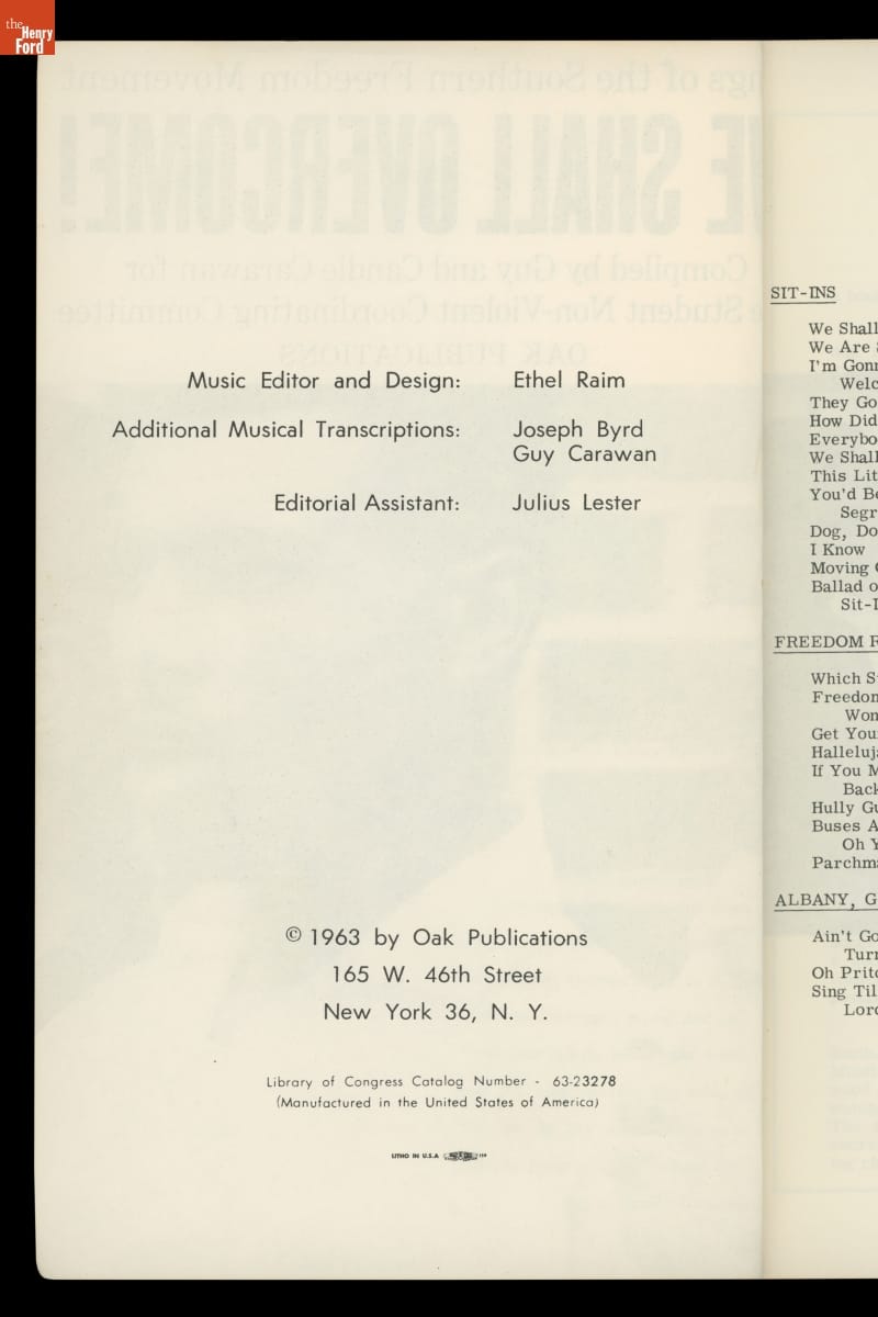 "Songs of the Southern Freedom Movement: We Shall Overcome!," 1963
