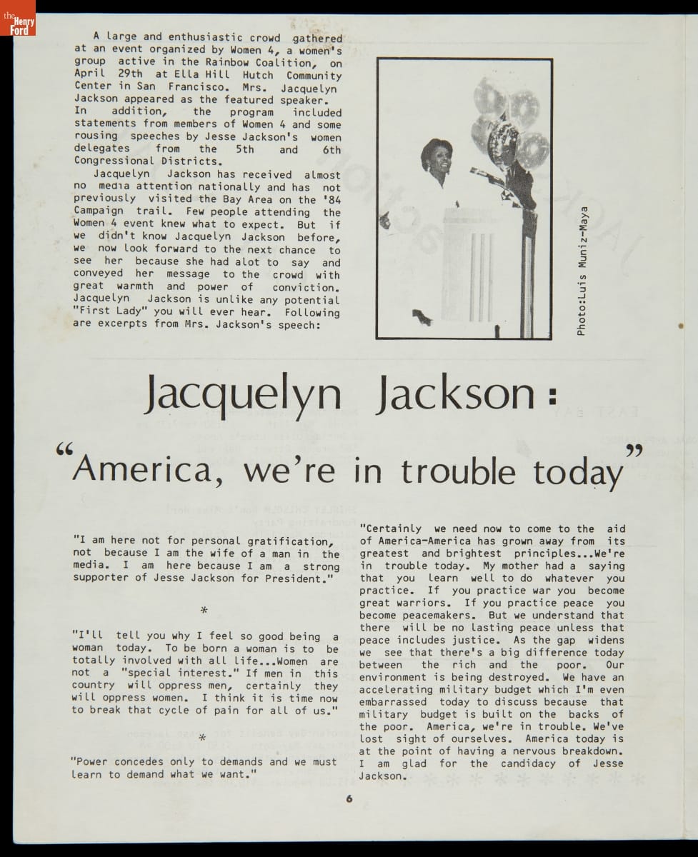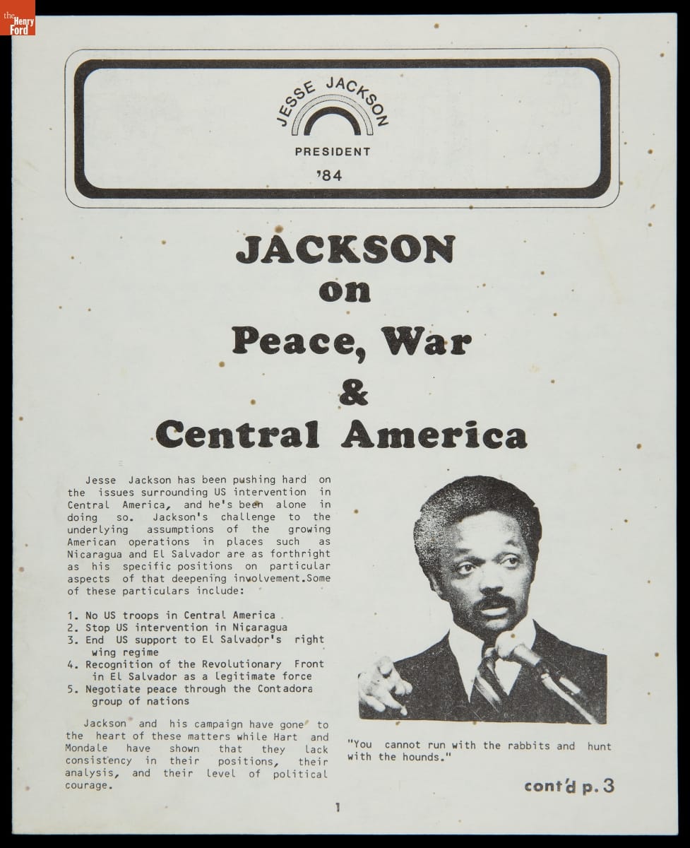 "Jesse Jackson President '84: Jackson on Peace, War, & Central America," May 8, 1984
