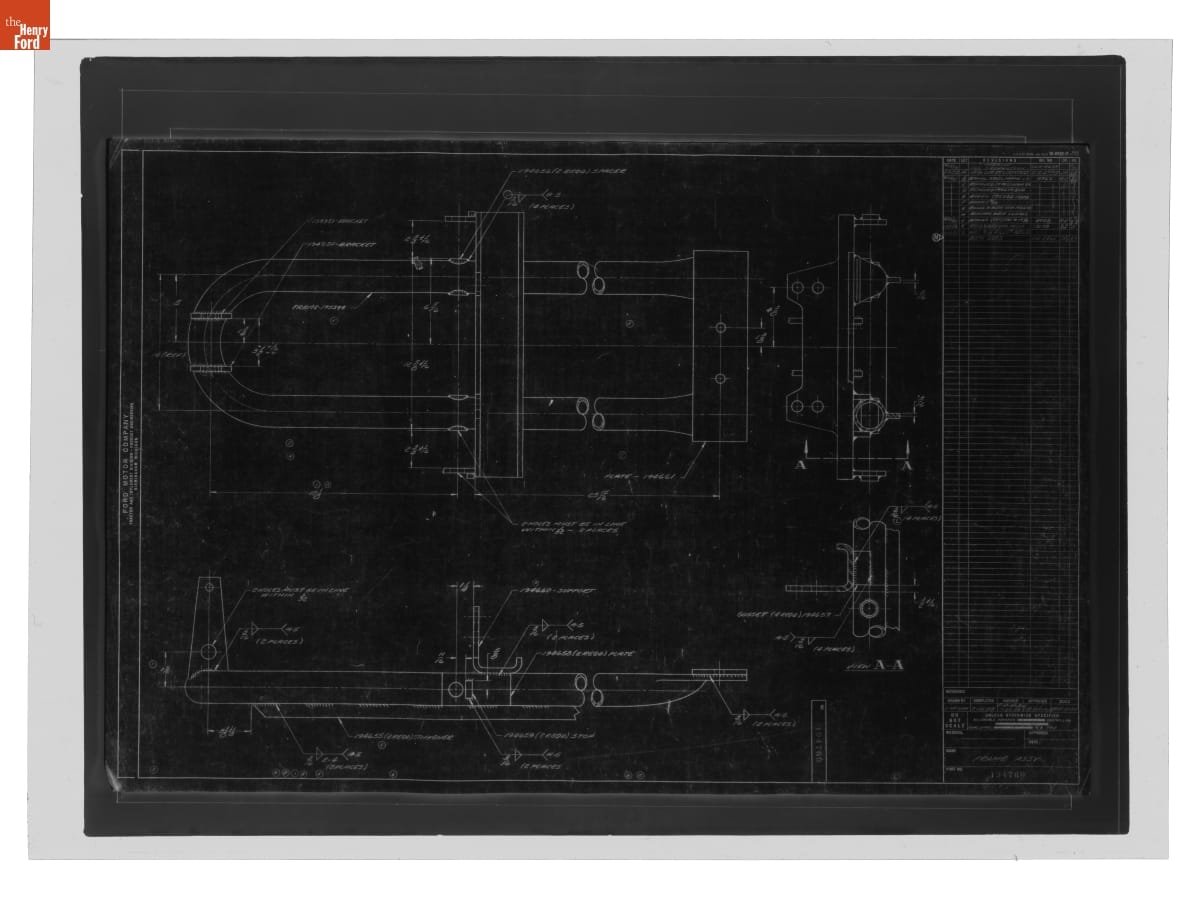 The Ford Motor Company created over a million parts drawings from 1903 to 1957. Many of these drawings specify engineering requirements for the components of Ford-made vehicles--including automobiles, trucks, tractors, military vehicles and Tri-motor airplanes. Others document assembly components, stages of casting and forging, or experimental designs. Beginning in the 1940s, Ford transferred the drawings to microfilm.