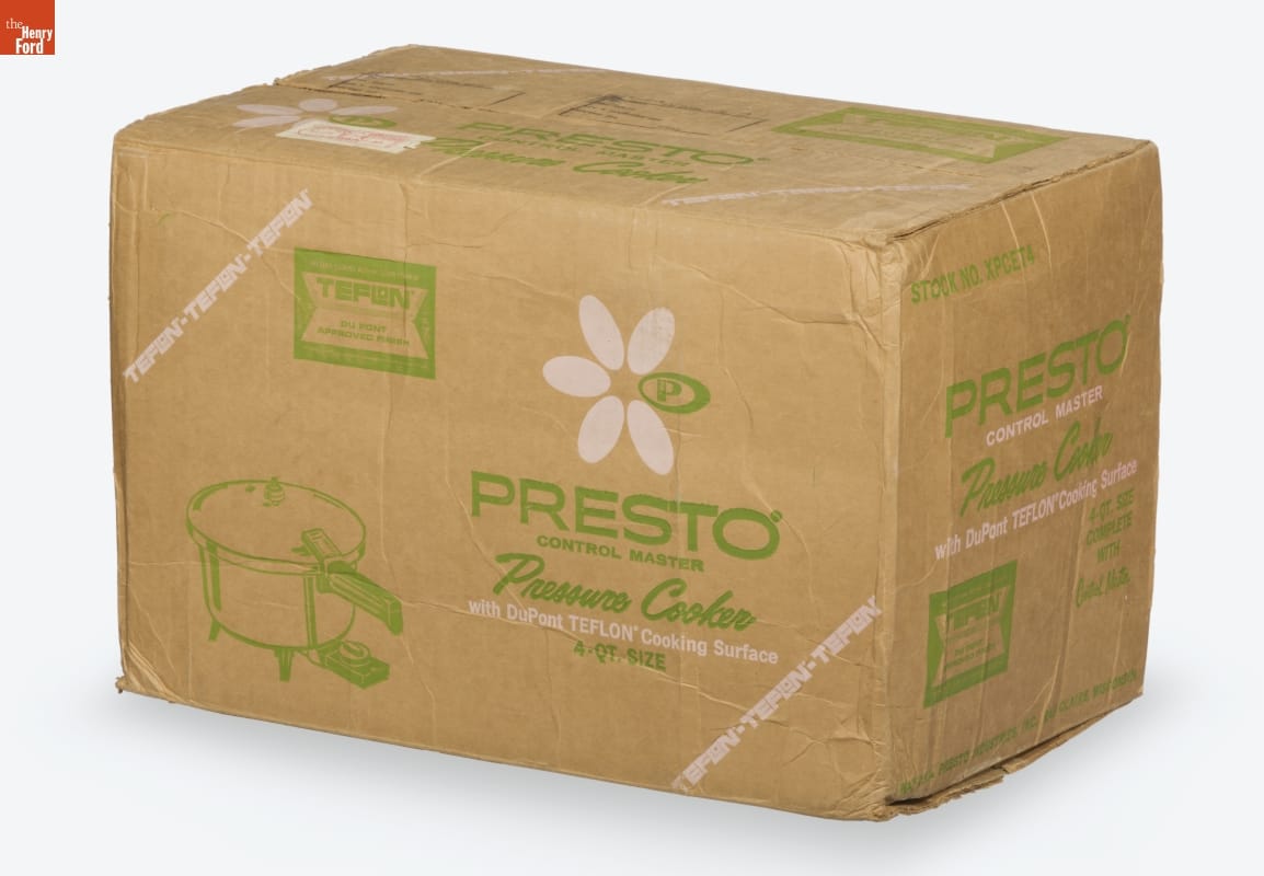 on side of box: TEFLON/ [...]/ PRESTO/ CONTROL MASTER/ Pressure Cooker/ with DuPont TEFLON Cooking Surface/ 4-QT. SIZE/ [...] on handle: PRESTO/ ELECTRIC PRESSURE COOKER/ WITH DUPONT TEFLON/ COOKING SURFACE/ [...]