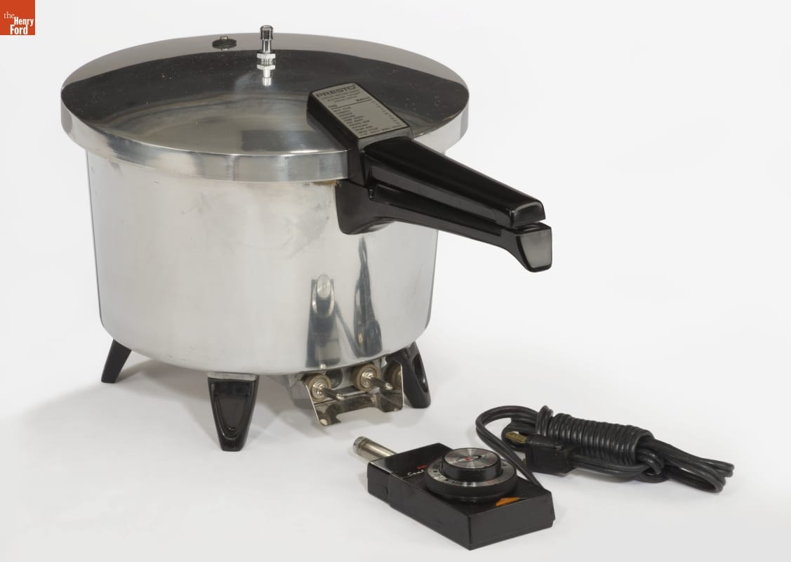 The National Pressure Cooker Company introduced the first saucepan-style pressure cooker under the brand name "Presto" in 1939. Fueled by its popularity, the company -- eventually renamed National Presto Industries -- expanded and diversified while continuing to produce an ever-improving line of pressure cookers. In the 1960s and 1970s, distinctive styling by Mel Boldt and Associates helped set Presto pressure cookers apart from the competition.