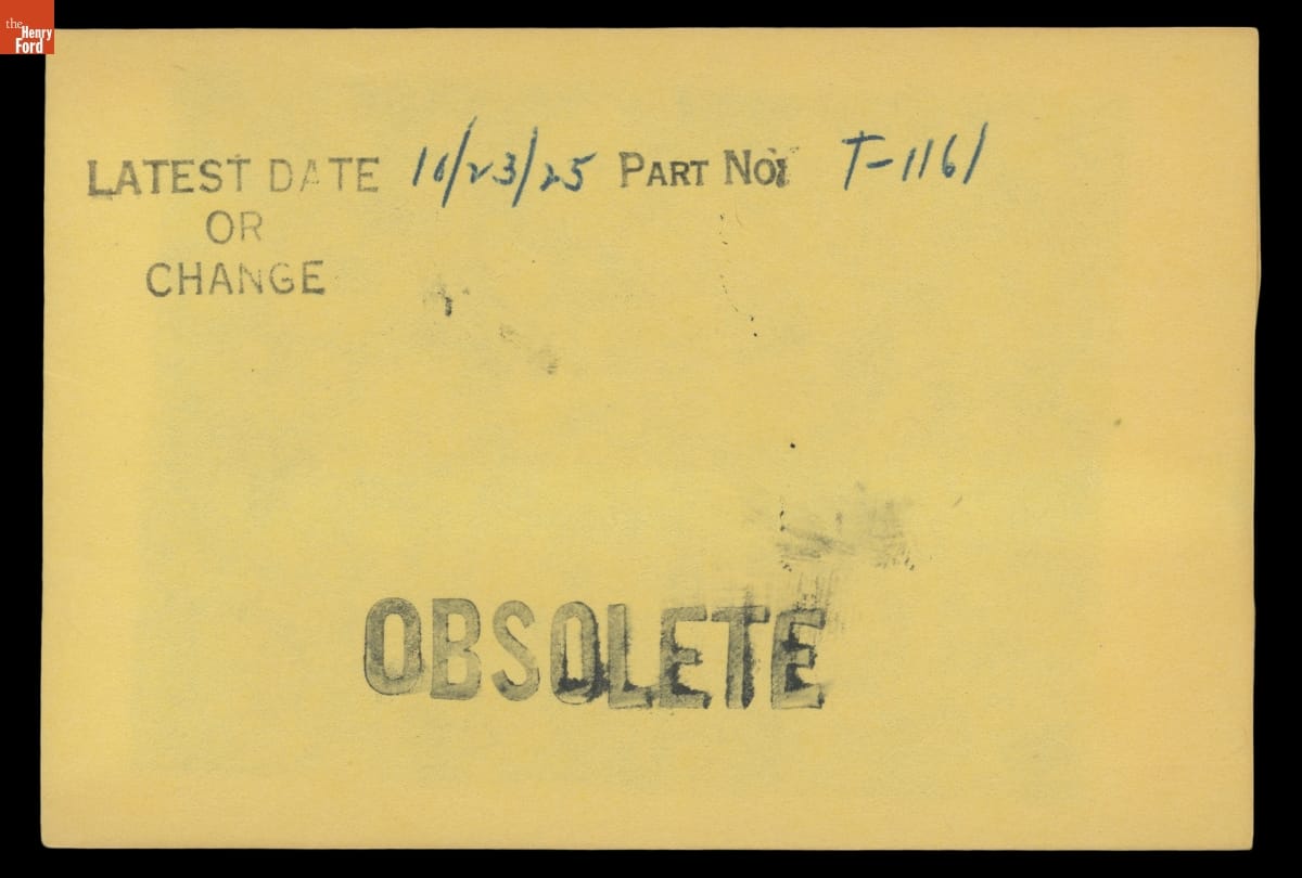 The Ford Motor Company created over a million parts drawings from 1903 to 1957. Many of these drawings specify engineering requirements for the components of Ford-made vehicles--including automobiles, trucks, tractors, military vehicles and Tri-motor airplanes. Others document assembly components, stages of casting and forging, or experimental designs. Beginning in the 1940s, Ford transferred the drawings to microfilm.